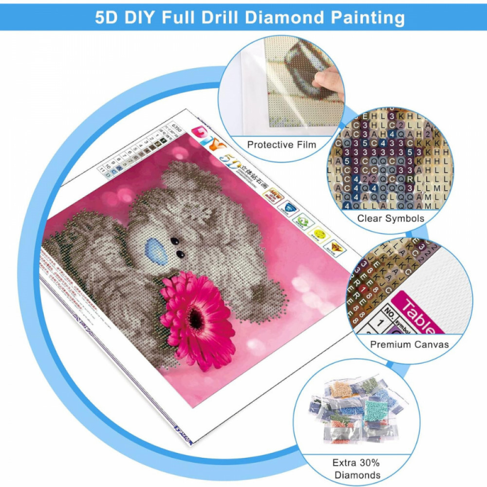 Das Werk des Diamantmalers bietet einen einzigartigen Anblick: einen entzückenden Bären, der vorsichtig eine Blume hält. Das Funkeln der Diamanten erweckt das weiche Fell des Bären und die Blütenblätter der Blume zum Leben und schafft so einen besonderen Moment, der sowohl süß als auch bezaubernd ist. Die akribische Präzision und Sensibilität des Künstlers zeigt sich in jedem Detail und fasziniert den Betrachter in dieser wunderschönen und intimen Szene.
