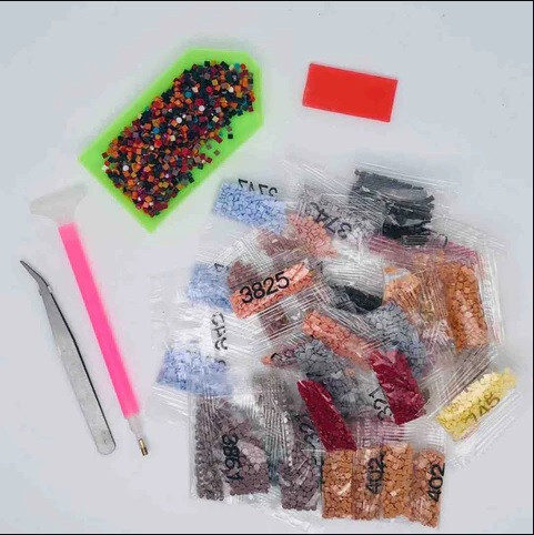 Schritte zum Diamantmalen:1. Nehmen Sie das Diamant-Malset heraus!2. Legen Sie die Diamanten in die Schale und schütteln Sie sie!3. Sehen Sie sich die Tabelle auf der Leinwand an, um die richtigen Diamantperlen zu finden!4. Tragen Sie die richtige Menge Kleber auf den Stift auf!5. Kleben Sie den richtigen Diamanten auf!6. Kleben Sie den Diamanten vorsichtig auf die entsprechende Stelle der Leinwand!7. Drücken Sie die Diamanten mit einem Buch auf die Leinwand, um sie zu fixieren!