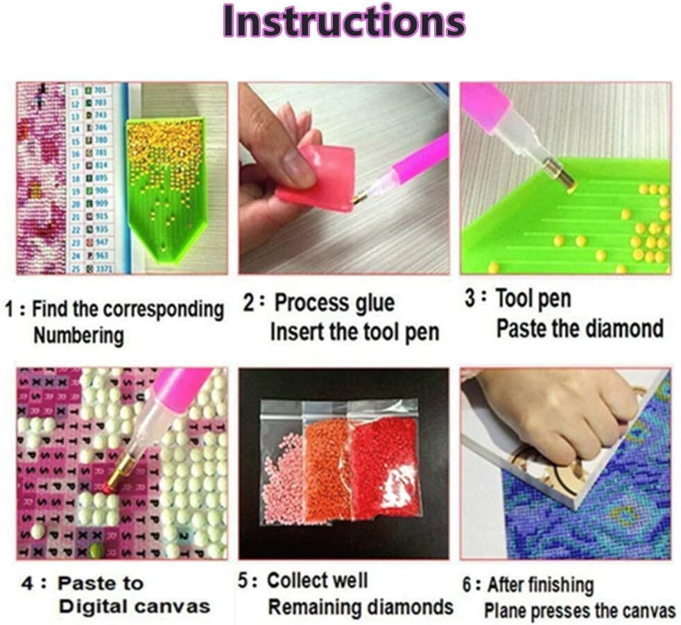 HD -Leinwand: Diamantzubehör enthält wasserfeste Ölfarbe. Die auf die Leinwand gedruckten Buchstaben und Symbole sind gut lesbar. Der Kleber ist stark, so dass die Diamanten nicht abfallen. Es enthält 30 % mehr Diamanten, sodass genug vorhanden ist, um das Bild zu vervollständigen.