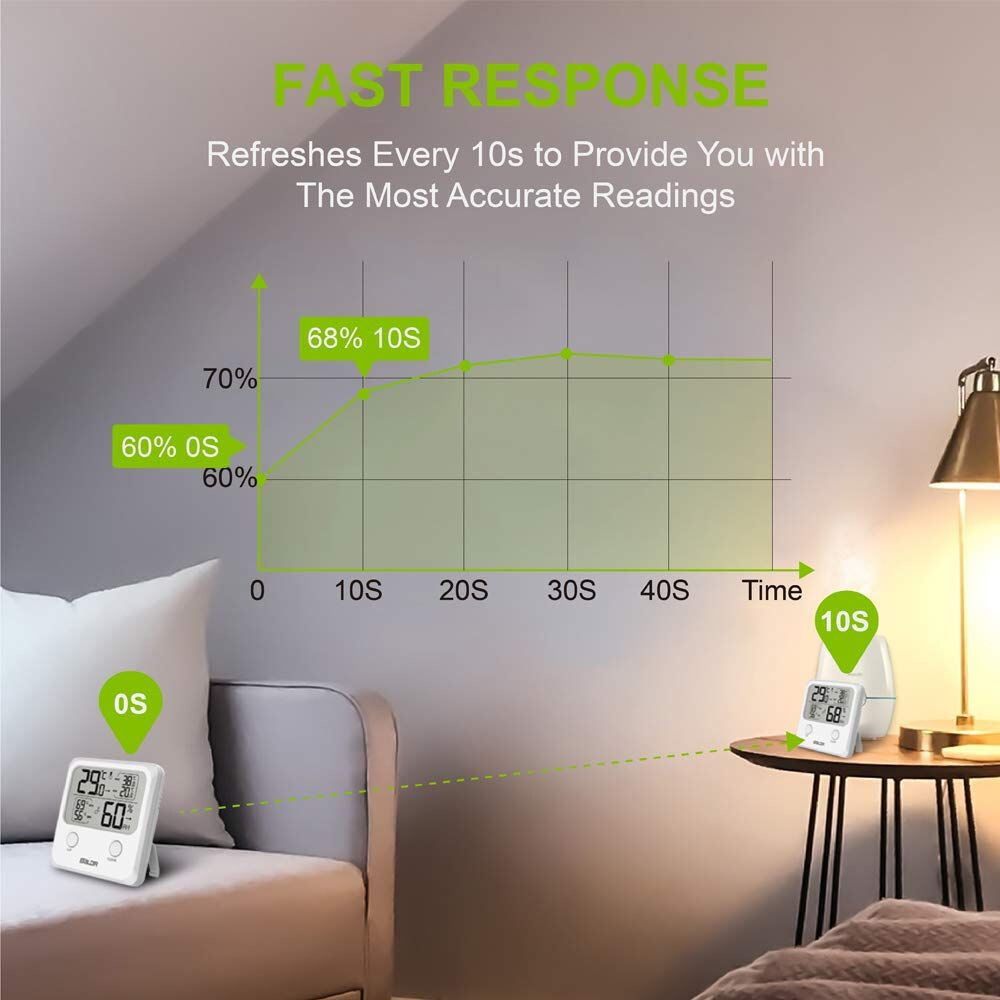 Das Messgerät verfügt über ein klares und gut ablesbares LCD -Display. Sie können die Temperatur und Luftfeuchtigkeit im Raum auf einen Blick überprüfen.
