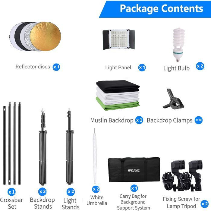 Hakutatz Professionelles Studiobeleuchtungsset mit Hintergrundsystem und Tragetasche