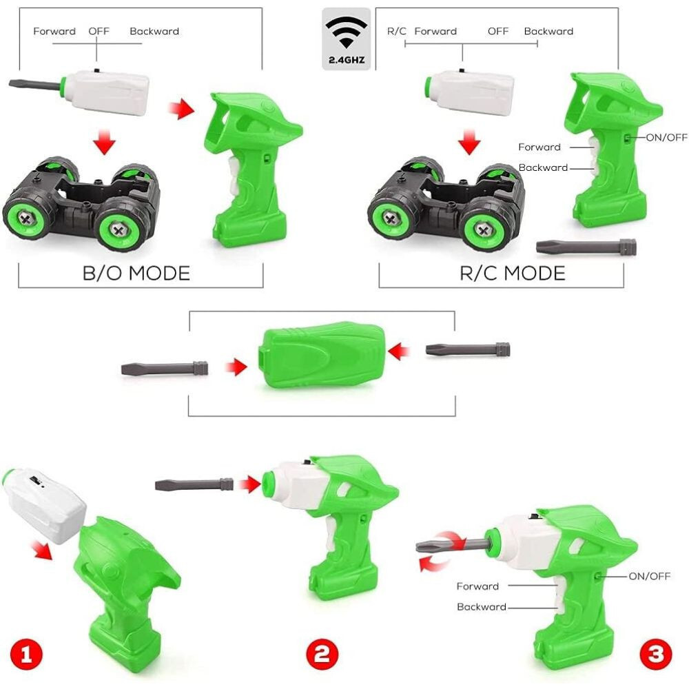 Beim Zusammenbau werden Fantasie, Kreativität, Motorik und Problemlösungsfähigkeiten gefördert.Bei der Montage stehen zwei Werkzeuge zur Auswahl: eines ist ein herkömmlicher Spielzeugschraubendreher und das andere ist ein elektrischer Spielzeugschraubendreher.