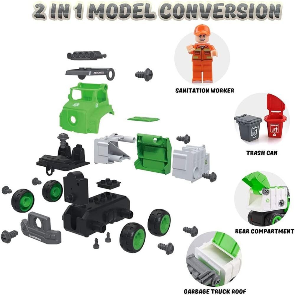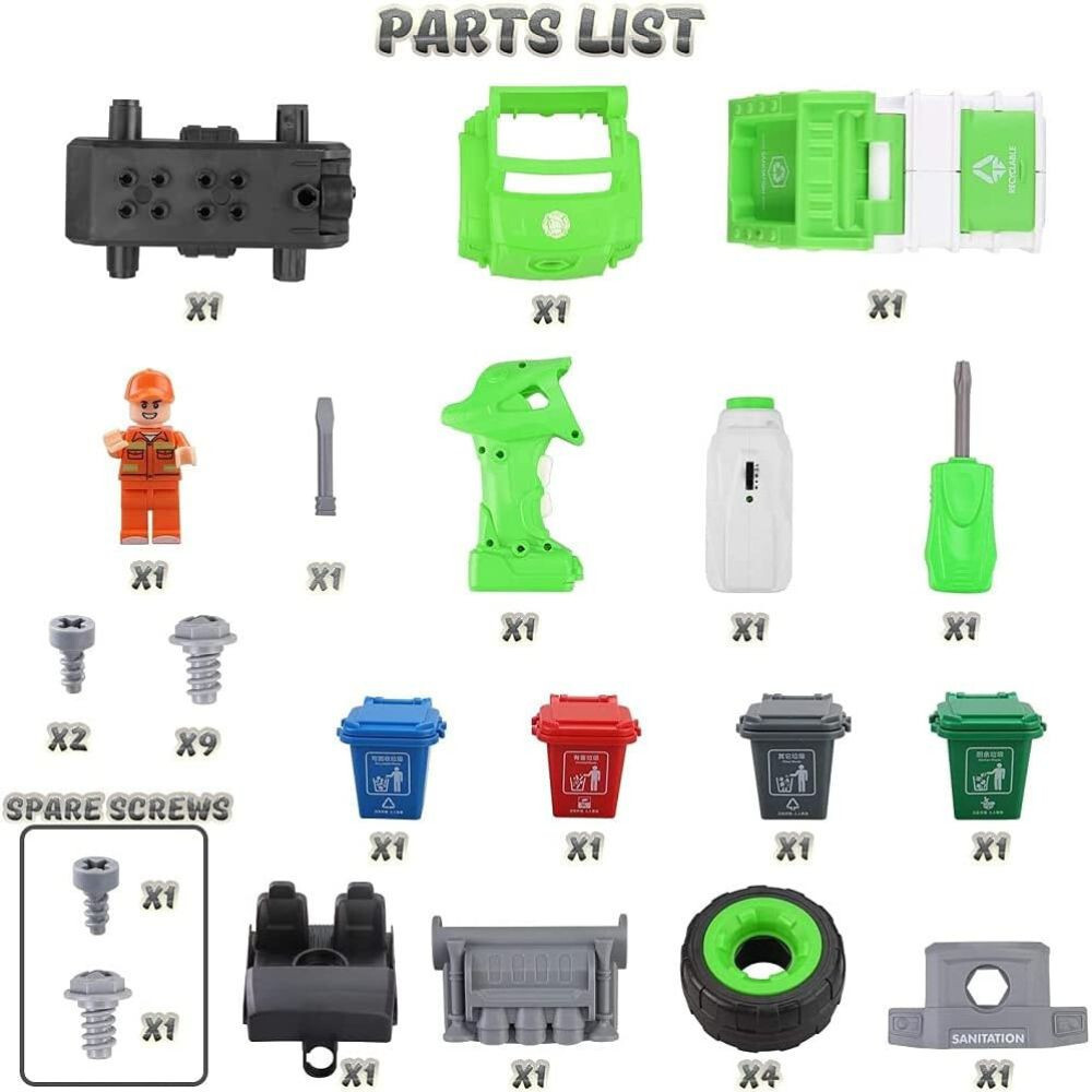 Kinder können die verschiedenen Teile zu einem Müllwagen zusammenbauen. Das Spiel hat 2 verschiedene Skins.