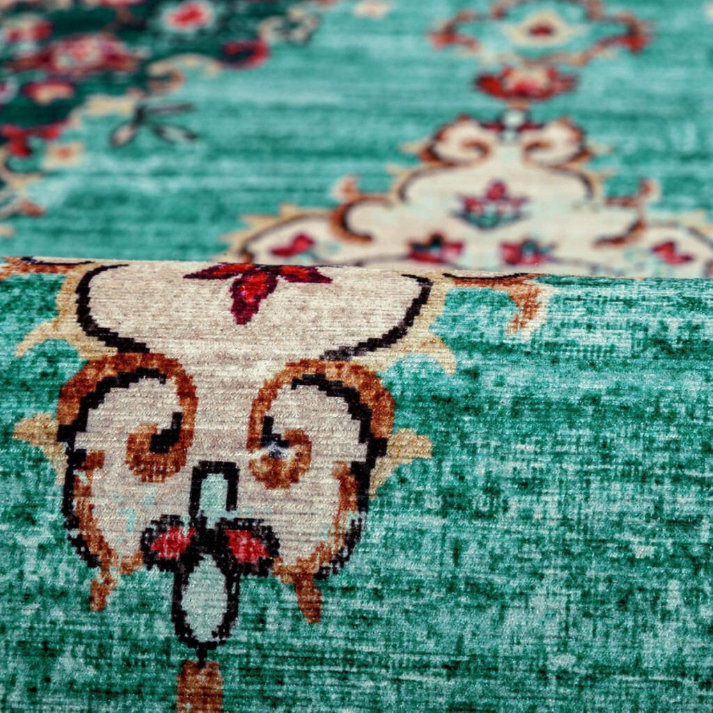 Taleta Durham Türkisfarbener Blumen-Bodenteppich für den Innenbereich, 120 x 170 cm