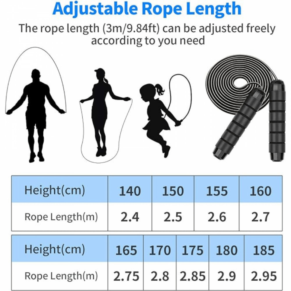 Verstellbares Springseil: Die Länge kann angepasst werden, ohne das Seil zu durchtrennen. Lösen Sie einfach das Seil von den Clips am Ende, stellen Sie es dann auf die gewünschte Länge ein und befestigen Sie es. Sogar Kinder können es in Sekundenschnelle schaffen.
