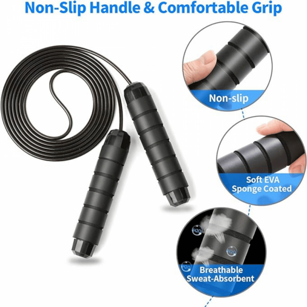 Spezielles Griffdesign: Der einzigartige Schaumstoffgriff bietet atmungsaktive, komfortable und rutschfeste Eigenschaften, sodass das professionelle Springseil leicht zu halten und zu tragen ist.