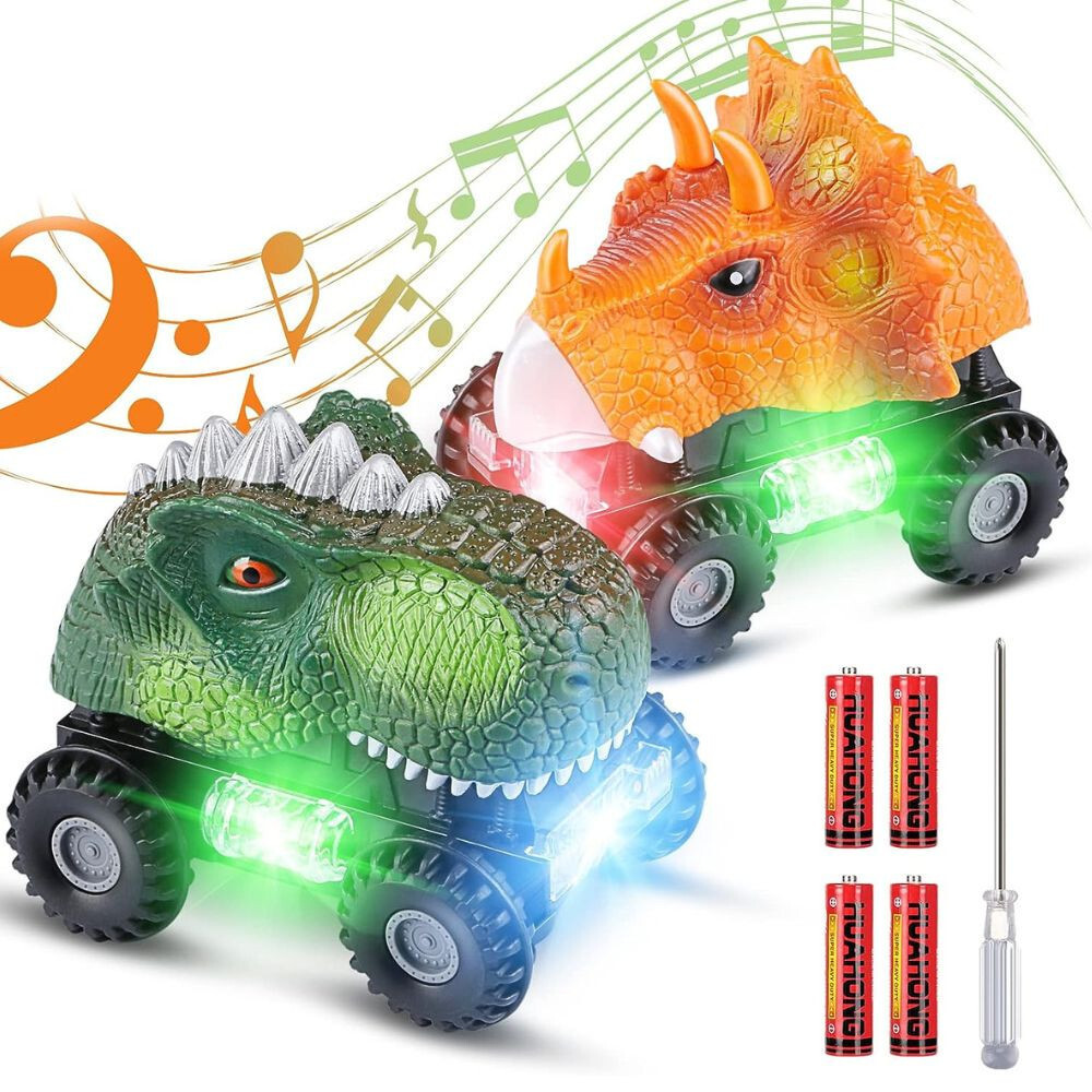 Intelligente Steuerung: Legen Sie 2 AA -Batterien in das Spielzeugauto ein, schalten Sie den Knopf ein und es funktioniert automatisch, ohne zu ziehen oder zu drücken, und sie ändern automatisch die Richtung, wenn sie auf ein Hindernis stoßen.Die Autos sind mit dreifarbigen LED -Leuchten ausgestattet und geben realistische Dinosauriergeräusche ab, um die Aufmerksamkeit Ihres Kindes zu erregen.