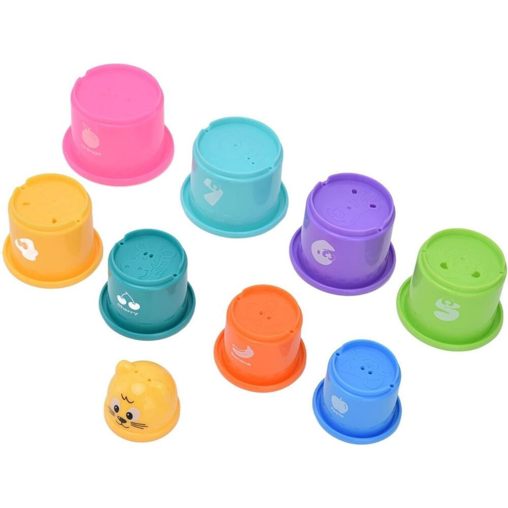 Mithilfe der 8 Gläser können Kinder etwas über Zahlen, verschiedene Tiere und Früchte lernen. Es fördert die Hand -Auge-Koordination und die Farben erregen die Aufmerksamkeit des Babys.