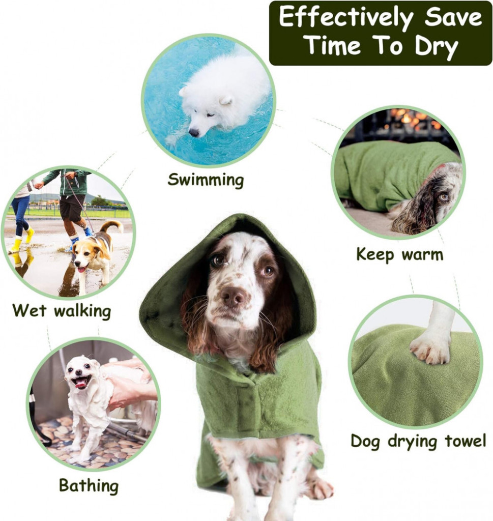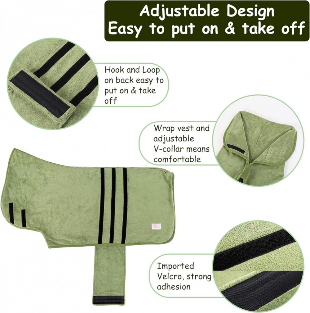 Superabsorbierende Materialien:Hergestellt aus fortschrittlichem Mikrofaser -Handtuchmaterial, sehr bequem und langlebig. Der Bademantel besteht aus einem sehr saugfähigen Material, das Feuchtigkeit effektiv aufnimmt. Ihr Haustier trocknet nach dem Baden schnell, sodass Sie Zeit sparen können.