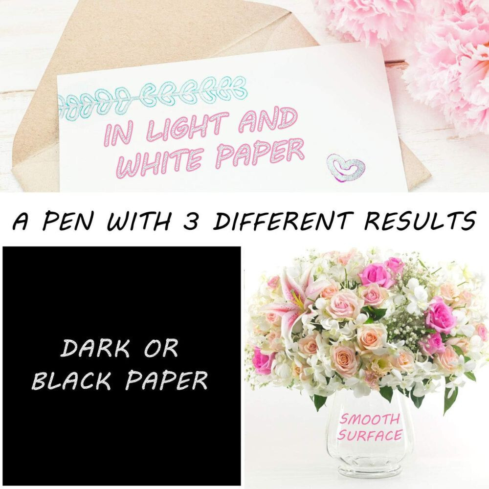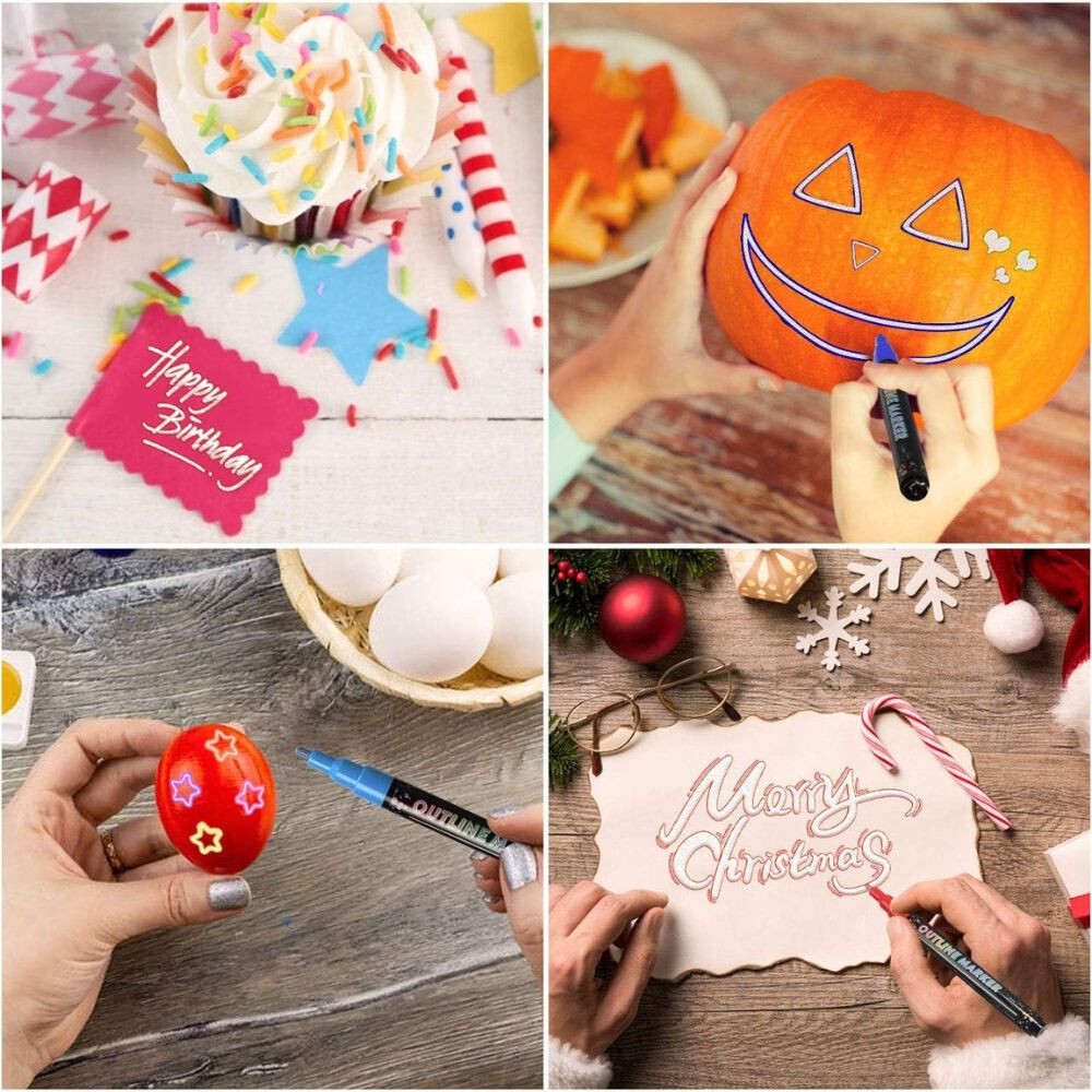 Es kann auf verschiedenen Oberflächen verwendet werden: Sie können damit Grußkarten schreiben, malen usw. Geeignet für nahezu alle glatten Oberflächen, z.B. Metall, Keramik, Holz, Kunststoff, aber man kann damit sogar Ostereier dekorieren.