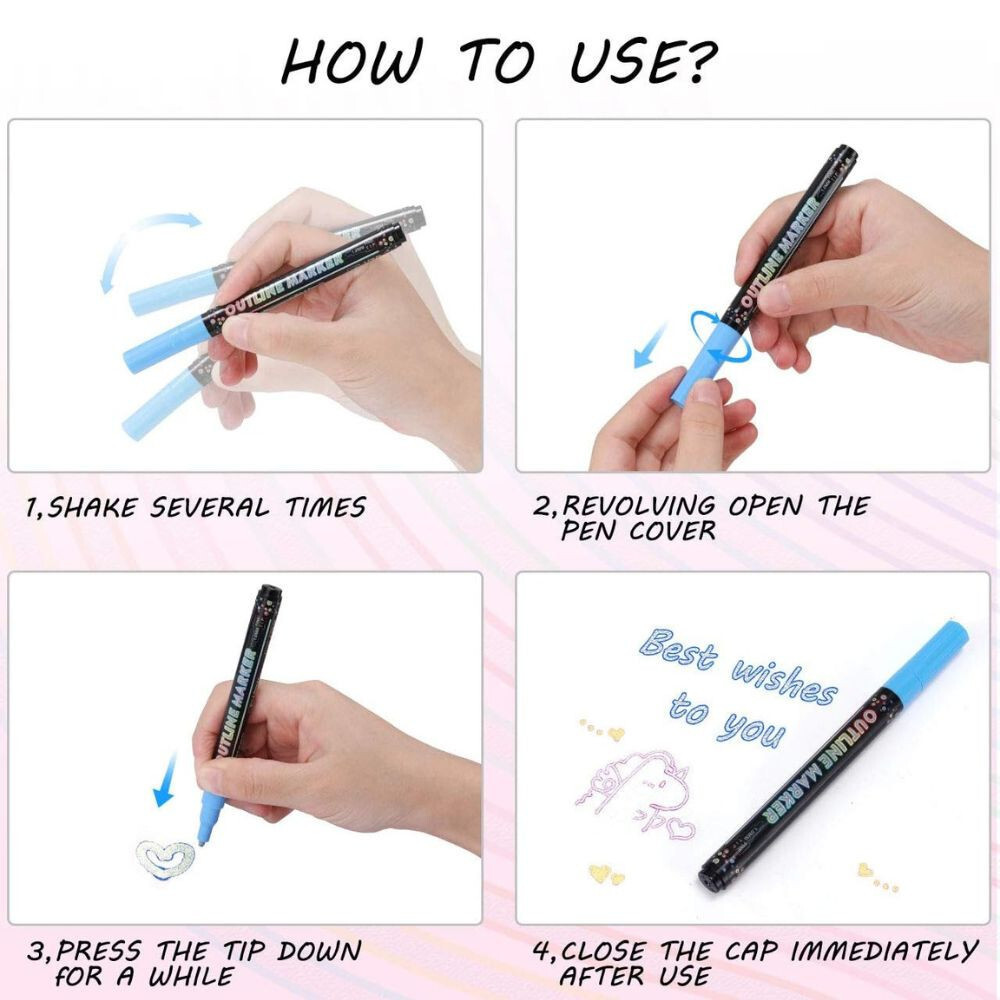 15 glitzernde Konturenstifte in verschiedenen Farben. Sie erzeugen automatisch Konturen für einen wunderschönen Zwei-Ton-Effekt.