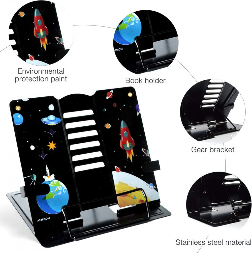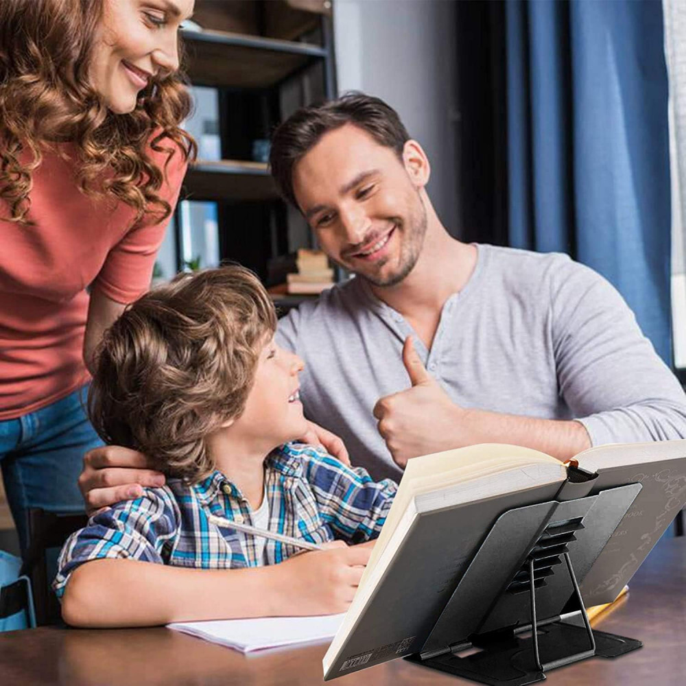 Über das Produkt:1. Langlebiges Material: Der Buchhalter besteht aus hochwertigem Metall und Kunststoff, die Oberfläche ist lackiert, rostfrei und bietet eine langlebige, starke Plattform selbst für die schwersten Bücher.2. Einstellbarer Winkel: 6Winkel sind frei einstellbar, und jeder Winkel kann auf einen bequemen Lesewinkel eingestellt werden. Der Buchhalter verfügt über verschiedene Rillen an der beweglichen Rückenlehne, mit denen Sie die Höhe und den Winkel je nach Bedarf anpassen können. Es fördert die richtige Haltung für eine bessere Gesundheit der Wirbelsäule.3. Breites Anwendungsspektrum: Dieses Bücherregal kann erweitert werden, um Bücher jeder Größe aufzunehmen. Zum Beispiel: Rezepte, A4-Papiere, Nachschlagewerke, Geschichtenbücher und Tablets.4. Freundliches Design: Ergonomisch gestaltet, um Nackenermüdung und Schmerzen vorzubeugen. Die richtige Lesehaltung verbessert die Gesundheit der Wirbelsäule und Kurzsichtigkeit, insbesondere bei Studenten, Büroangestellten, Künstlern usw. für.5. Einfache Aufbewahrung: Es gibt zwei Metallhalterungen, mit denen Sie das gesamte Bücherregal zur einfachen Aufbewahrung zusammenklappen können, und es kann bei Nichtgebrauch einfach zusammengeklappt und flach zusammengelegt werden.