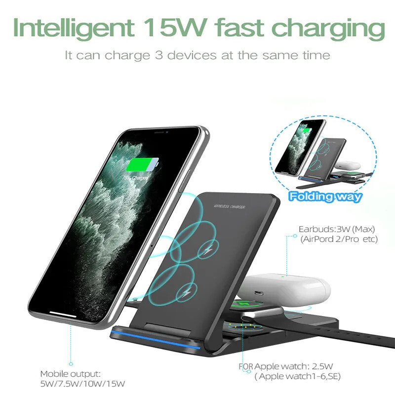 3-in-1 faltbares kabelloses Ladegerät.