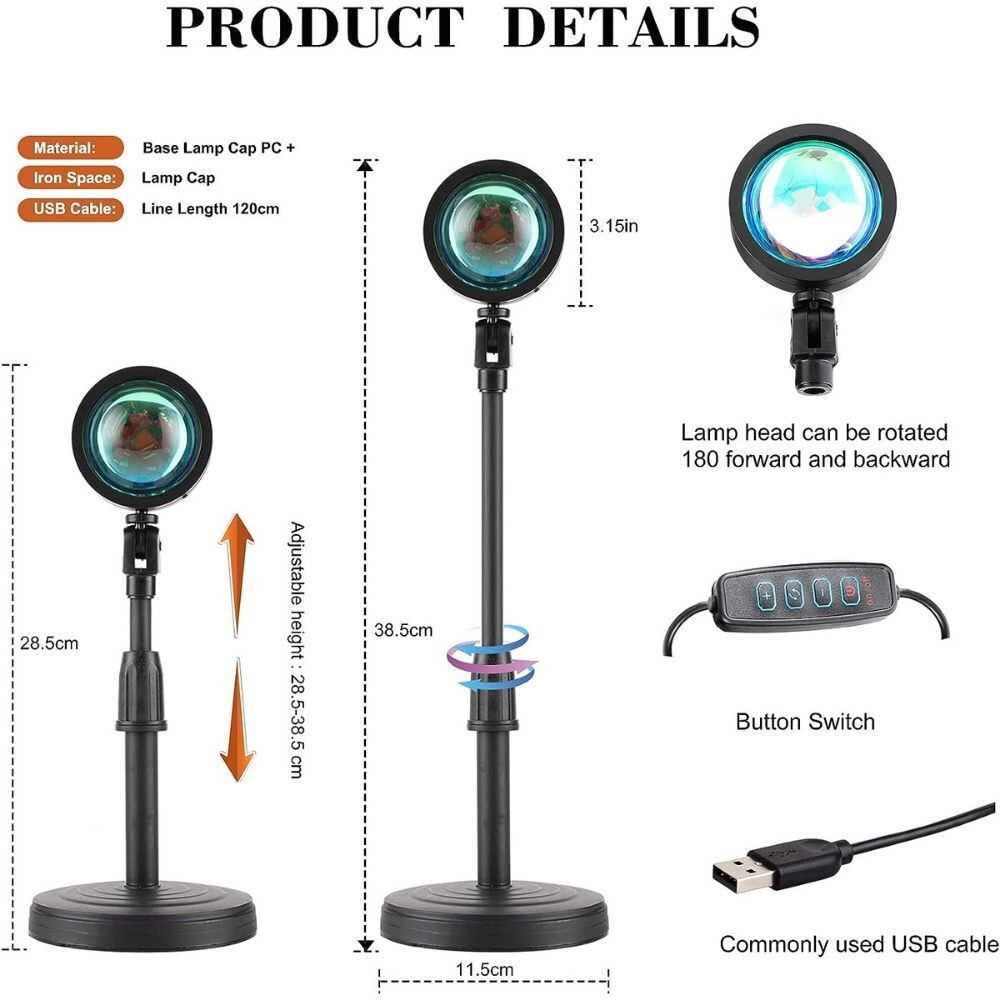 180° Drehbare USB-LED Sonnenuntergangs-Projektorlampe – Mit Einstellbarer Höhe und Helligkeit