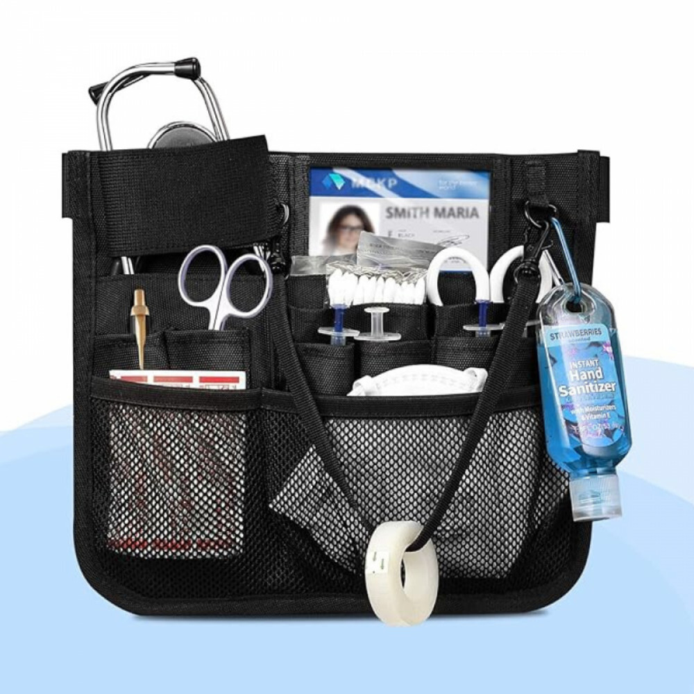 Halten Sie Gegenstände in Reichweite: Az elfoglalt orvosok számára ez az orvosi övvel ellátott nővértáska -rendezőben mindent megtalál, amire szüksége van, és könnyen, gyorsan elővehető, ami életmentő lehet. Ez a nővércsomagolású, csípős orvosi kiegészítő táska több zsebbel rendelkezik, amelyekben tollak, markerek, hőmérő és tolllámpák tárolhatók.