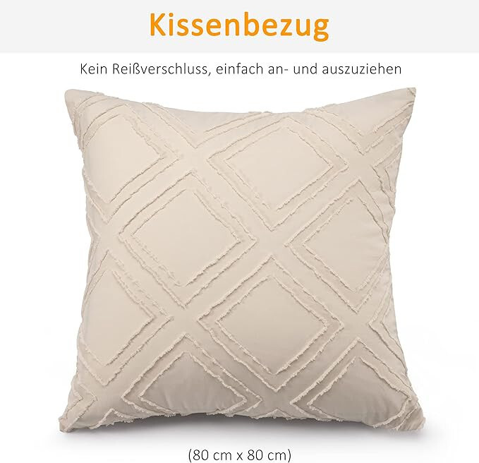 1 Bettbezug 135x200 cm und 1 Kissenbezug 80x80 cm mit Reißverschluss.