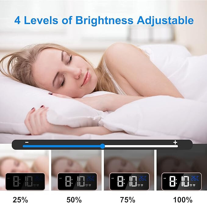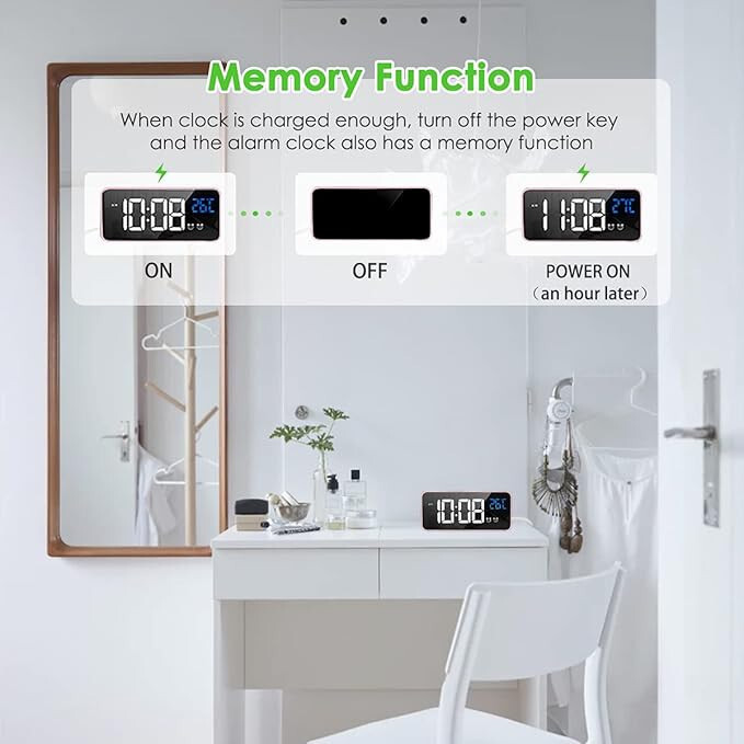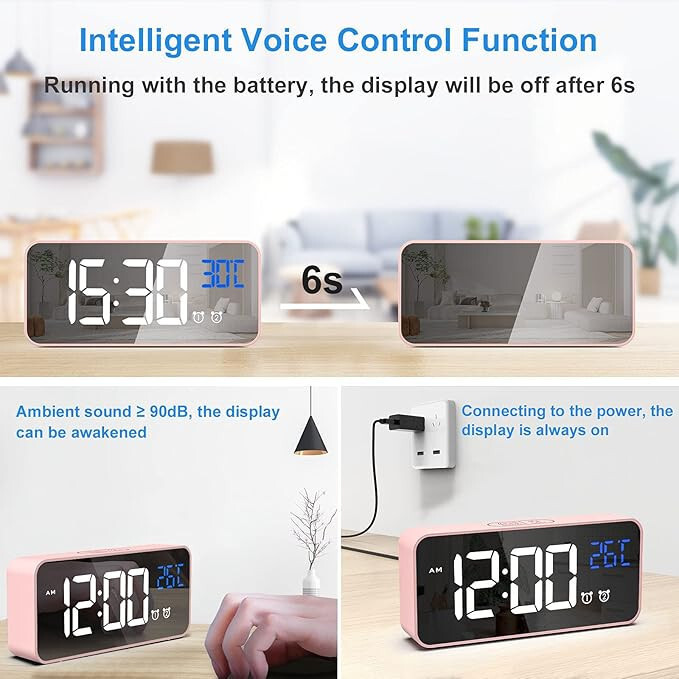 Stimmenkontrolle unterstützt, mit LED -Anzeige, einstellbarem Nachtlicht.Mit integrierter Thermometerfunktion, auch Alarmfunktion möglich, mit 13 Alarmtönen.Modernes Design: Dank des modernen Designs ist es eine passende Dekoration für jeden Raum, Sie können es auf Ihrem Schreibtisch, Schlafzimmer, Wohnzimmer usw. platzieren.