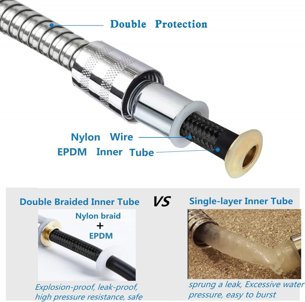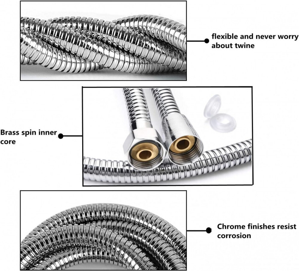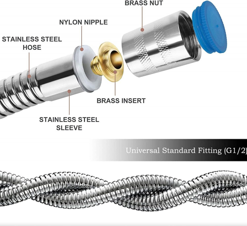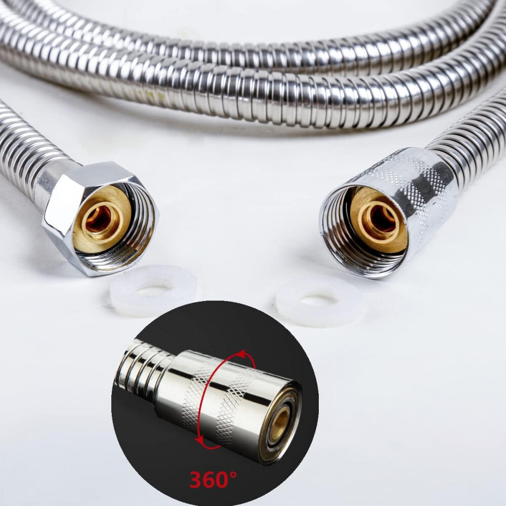 Brauseschlauch, 1Meter, flexibler Edelstahl-Chrom-Brauseschlauch, langer Brauseschlauch, Rururug-Messinganschluss, verschlüsselt, explosionsgeschützt, auslaufsicherer Schlauch, universell