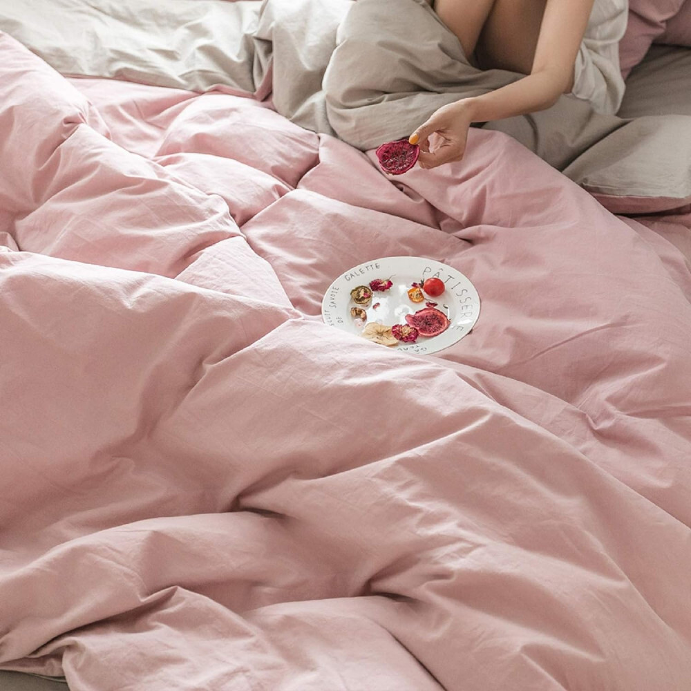 Malvenrosa Bettbezug (die andere Seite ist kaffeefarben)