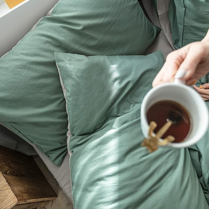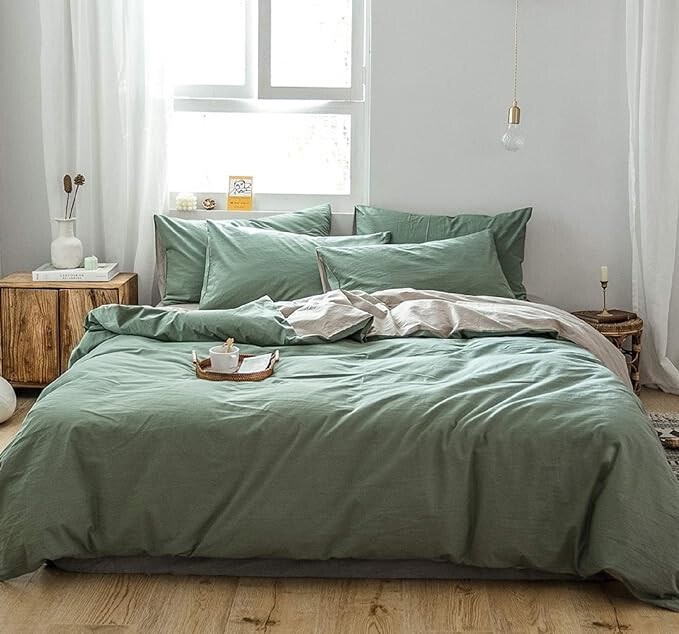 Größe und Verpackung:1 Bettbezug 135 x 220 cm + 1 Kissenbezug 80 x 80 cm.Material:100 % Premium-Baumwolle, atmungsaktiv, ultraweich und extrem langlebig. Diese Qualität sorgt für einen besonders leichten und hautfreundlichen Bettbezug, der das ganze Jahr über perfekt verwendet werden kann. Gönnen Sie sich einen ruhigen und erholsamen Schlaf.Klassisch einfach:Moderne, einfache doppelseitige Bettwäsche. Perfekt für Ihr modernes Zuhause, machen Sie Ihr Zimmer stilvoller.Praktisches Design:Der Metallreißverschluss erleichtert das An- und Ausziehen des Bettbezugs. Die Bindungselemente in den inneren 4 Ecken sind praktisch, um die Steppdecke an Ort und Stelle zu halten.Waschanleitung:Es kann separat in der Waschmaschine oder von Hand bei niedriger Temperatur gewaschen werden. Nicht bleichen. Nicht im Trockner trocknen.
