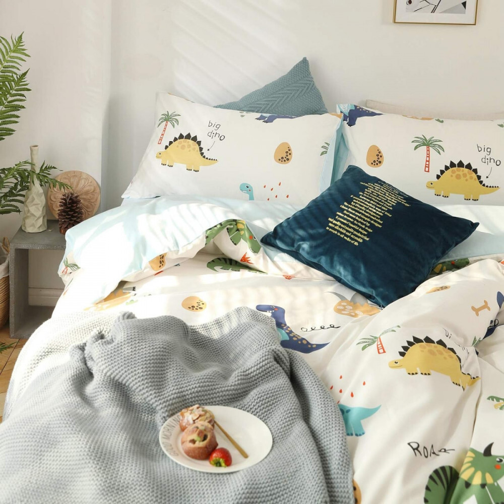 GETIYA Eleganter Bettbezug 135 x 200 cm – mit Dino-Muster, einfaches Bettbezug-Set, 2-teilig, bauschiger Baumwoll-Bettbezug mit 1 Kissenbezug, Größe: 80 x 80 cm.