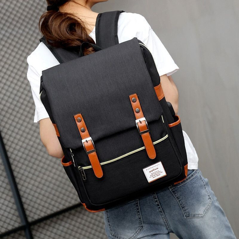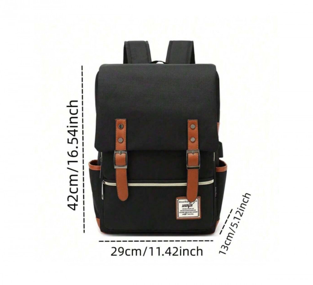 Der schwarze Reiserucksack ist in zeitlosem Schwarz gehalten, was einen Unisex-Stil repräsentiert, sodass er von jedem Geschlecht getragen werden kann. Die braunen Schnallen sind nicht nur ästhetisch ansprechend, sondern sorgen auch dafür, dass der Rucksack sicher verschlossen bleibt, und bieten gleichzeitig einen geräumigen Innenraum für praktische Aufbewahrung auf Reisen oder im Alltag.