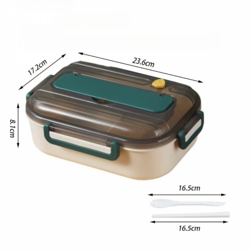 Diese zweigeteilte Lunchbox verfügt über ein praktisches Besteckfach, das auch als Handyhalter verwendet werden kann. Die zwei Fächer sorgen für eine getrennte Aufbewahrung der Speisen und bewahren deren Frische. Dank des kompakten und multifunktionalen Designs ist sie ideal für den täglichen Gebrauch.