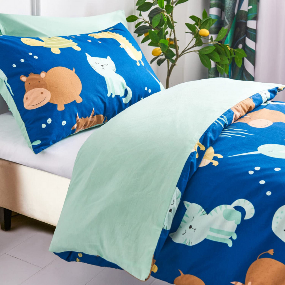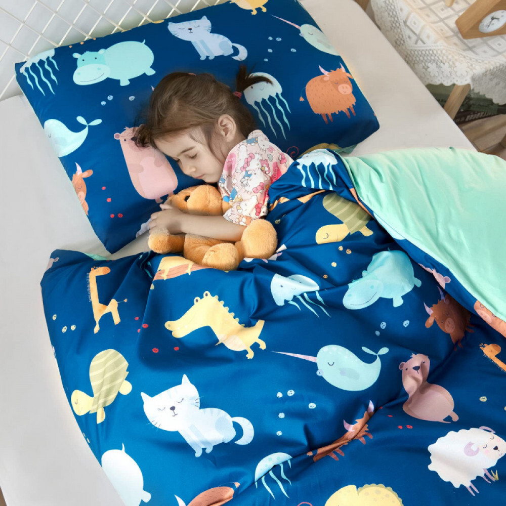 Fröhliche und niedliche Bettwäschegarnitur für Kinder, die einen komfortablen Schlaf gewährleistet und mit ihren verspielten Mustern das Kinderzimmer aufhellt. Hergestellt aus hochwertigem Material, das hautfreundlich und leicht zu reinigen ist.