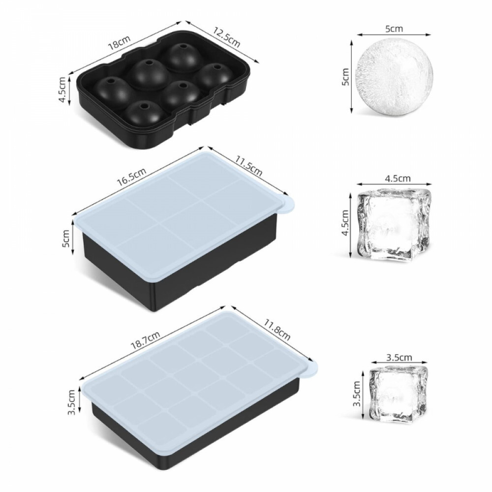 Auswahl an Eiswürfeln: Sie erhalten 5x5 cm und 3,5x3,5cm große quadratische Eiswürfel und einen 4,5x4,5cm großen kugelförmigen Eiswürfel. Mit dieser großzügigen Form und perfekten Größe können Sie Ihre Getränke schnell kühlen und einen langanhaltenden Kühleffekt erzielen.