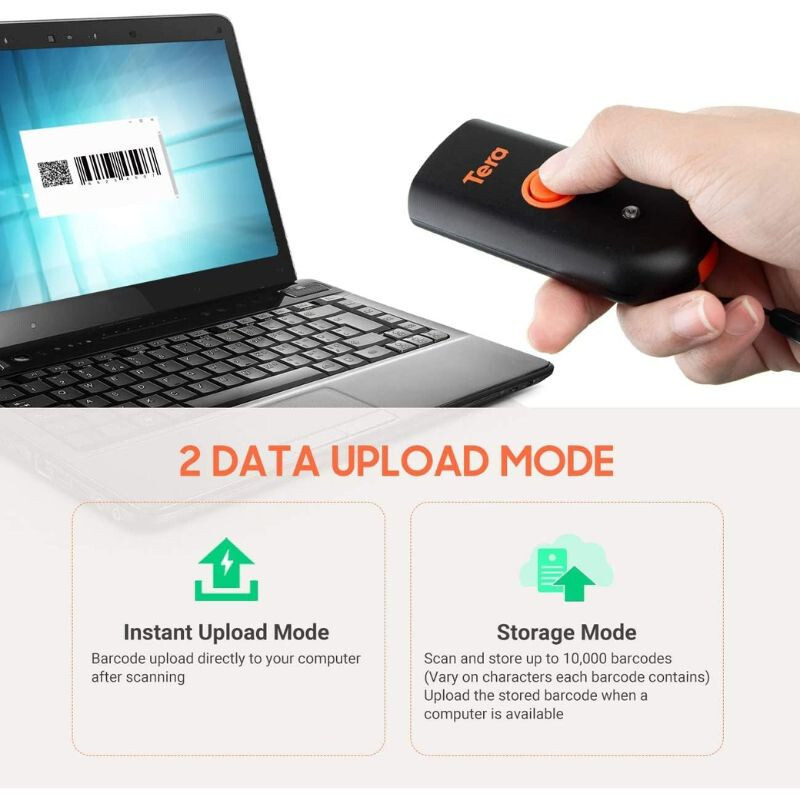 Das Gerät bietet drei Verbindungsarten: Bluetooth, 2,4-GHz-Funkdongle und USB-Kabel. Dadurch lässt es sich problemlos mit Computer, Laptop, Tablet oder Smartphone verwenden. Die Funkverbindung ermöglicht eine Reichweite von bis zu 200 Metern in hindernisfreier Umgebung und ist somit ideal für größere Lagerhallen oder Verkaufsflächen. Die Vibrationsfunktion ist besonders praktisch in Umgebungen, in denen Ruhe wichtig ist, da der Scanner bei erfolgreichem Scan vibriert, anstatt einen Ton von sich zu geben.