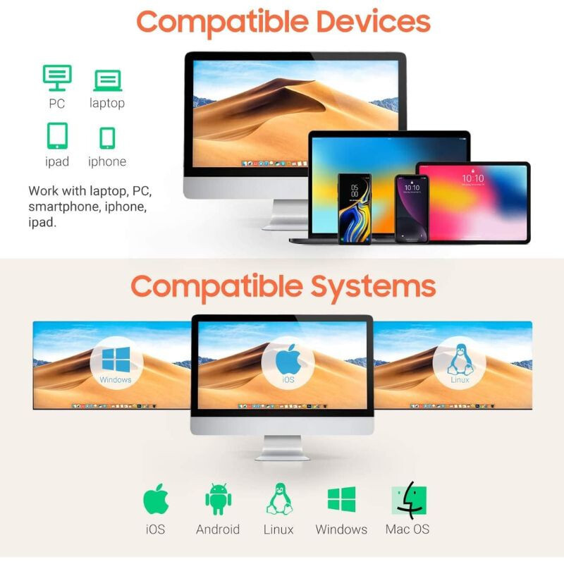 Die Tera Mini 1100D bietet umfassende Kompatibilität und funktioniert mit Windows 11, 10, 8, 7und XP sowie mit Mac OS, Linux, iOS und Android. Dank dieser Vielseitigkeit lässt sie sich in nahezu jeder Umgebung und auf jedem Gerät einsetzen, egal ob Computer, Laptop, Tablet oder Smartphone. (Hinweis: Nicht kompatibel mit Square.)