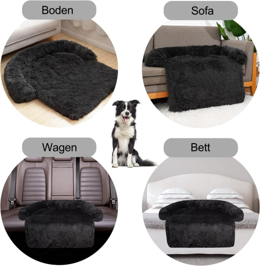 Bequeme Materialien: Hochwertige, luxuriöse Kunstfellmaterialien bieten Ihrem Haustier eine warme, sichere und komfortable Schlafumgebung in hoher Qualität. Memory-Schaum hilft ihnen, sich schneller zu beruhigen und Ängste zu lindern.Rutschfeste Befestigung: Befürchten Sie, dass der Sofaschoner durch die Bewegungen Ihres Hundes abrutscht? Das Design des doppelt verriegelbaren Griffs und der rutschfesten Basis verhindert, dass sich die Hundeunterlage leicht bewegt, schützt so Ihr Haustier und verhindert Schäden an den Möbeln. Das rutschfeste, wasserdichte Isolationsmaterial an der Unterseite reduziert Reibungsgeräusche und sorgt für eine ruhige Umgebung.Orthopädisches Hundebett: Die aus doppellagigem Plüsch genähten Boden- und Nackenkissen sind mit hochelastischer Baumwolle gefüllt, die Körper und Kopf stützt, Ermüdungserscheinungen und Gelenkbelastungen reduziert, die Schlafhaltung des Tieres verbessert und für einen erholsamen Schlaf sorgt. Eine große, faltbare Plüschdecke, perfekt für Haustiere, die sich gerne zusammenrollen.Leicht zu reinigen: Sie müssen sich nicht um eine komplizierte Reinigung kümmern, der Sofaschoner für Hunde lässt sich ganz einfach entfernen. Öffnen Sie einfach den Reißverschluss und entfernen Sie das Nackenkissen. Es kann in kaltem Wasser gewaschen werden, muss nicht gebügelt werden, trocknet leicht an der Luft, ist knitterfrei, behält seinen neuen und weichen Zustand und kann mehrmals verwendet werden.Stilvoll und praktisch: Dieses Hundesofa ist unverzichtbar für alle, die gerne mit einem Haustier reisen. Der Sofabettschutz eignet sich nicht nur für Sofas, Betten, Böden und Stühle im Innenbereich, sondern kann auch als Outdoor-Teppich und für Wohnmobilsitze verwendet werden. Schützt Möbel vor Flecken, Haaren und Haustierabnutzung. Die Produkte sind in drei Größen erhältlich – klein, mittel und groß – sodass sie für die meisten Haustiere passen.