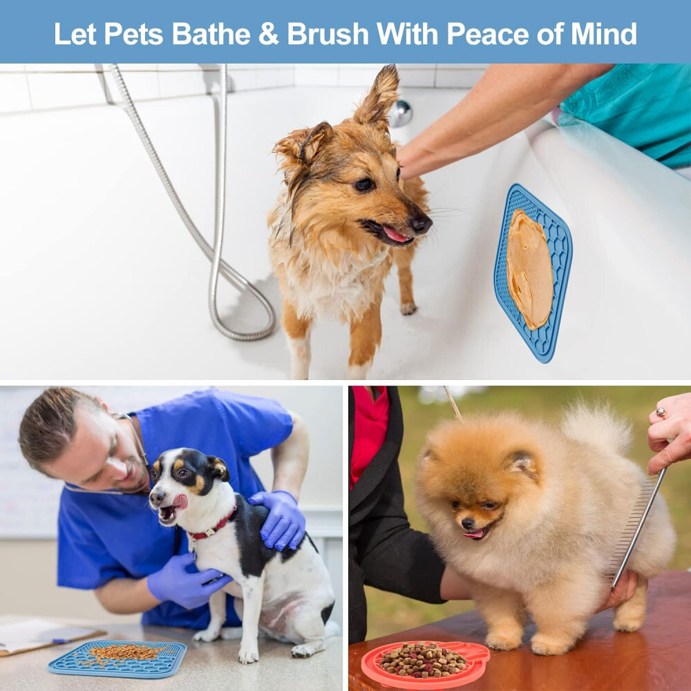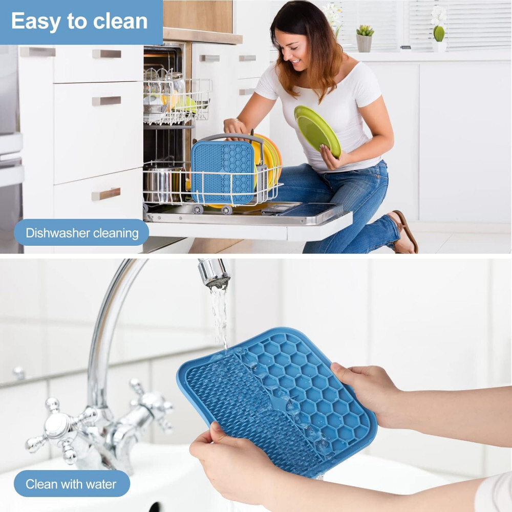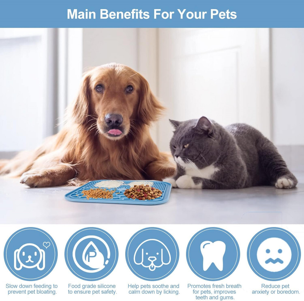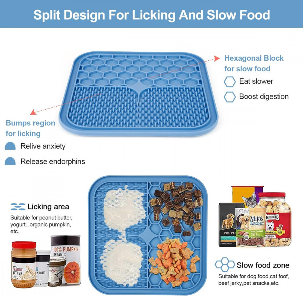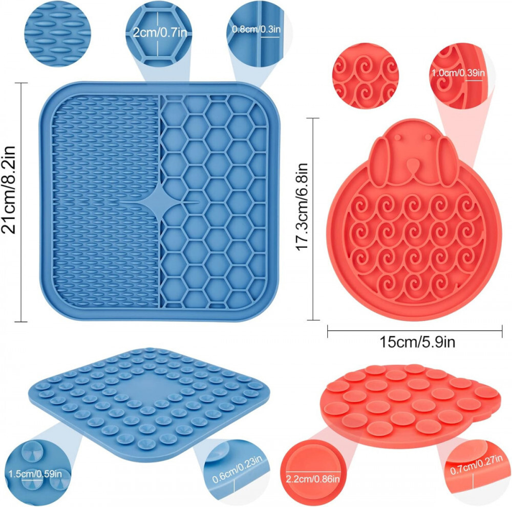 Dieses Set aus 2 langsamen Fressnäpfen und Lecknäpfen ist ideal zum Servieren von Cremes und bietet gleichzeitig eine hervorragende Ablenkung während des Badens und der Pflege von Haustieren. Das lebensmittelechte Silikonmaterial ist sicher und langlebig, und das Set enthält auch einen praktischen Spatel.