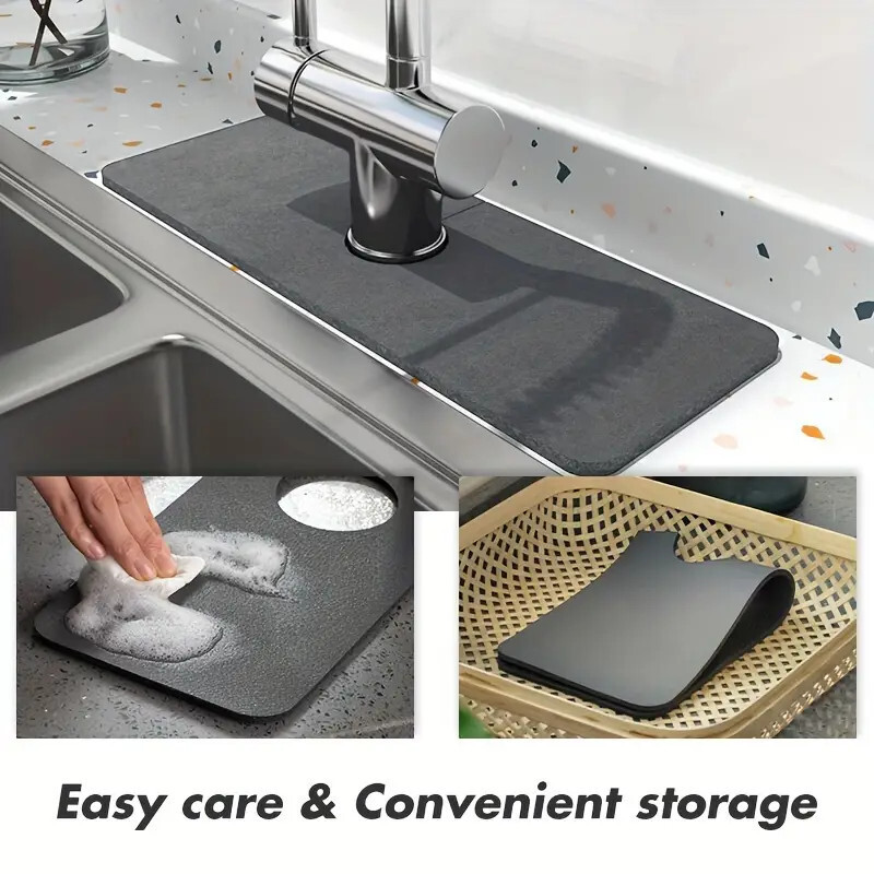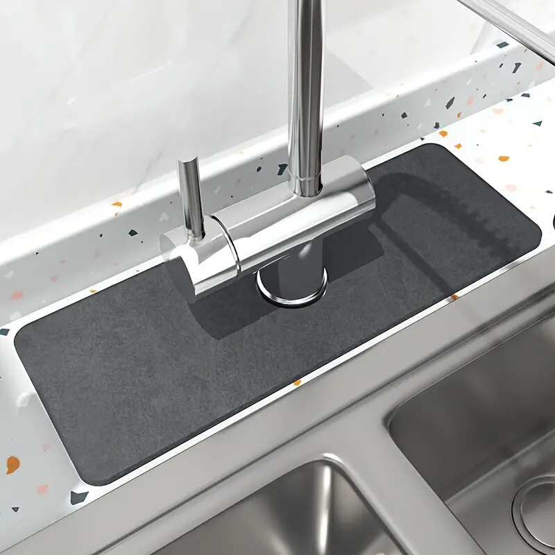 Rutschfeste, saugfähige Matte für Wasserhähne, Küchen- und Badezimmerwaschbecken. Spritzwassergeschützt, waschbar und wiederverwendbar.