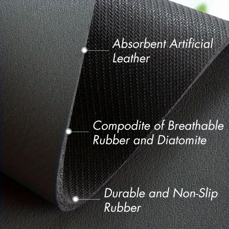 [Starke Saugfähigkeit]Wasserabsorbierende Polyesteroberfläche + Kieselgur in der Mitte + rutschfeste Gummiunterseite: nimmt Wasser schnell auf und verhindert so Verschütten oder Spritzer; auslauf- und schmutzabweisend; es bleibt an Ort und Stelle und das Wasser fließt nicht darunter. Die saugfähige Matte des Wasserhahns hält das Waschbecken trocken und sauber.
