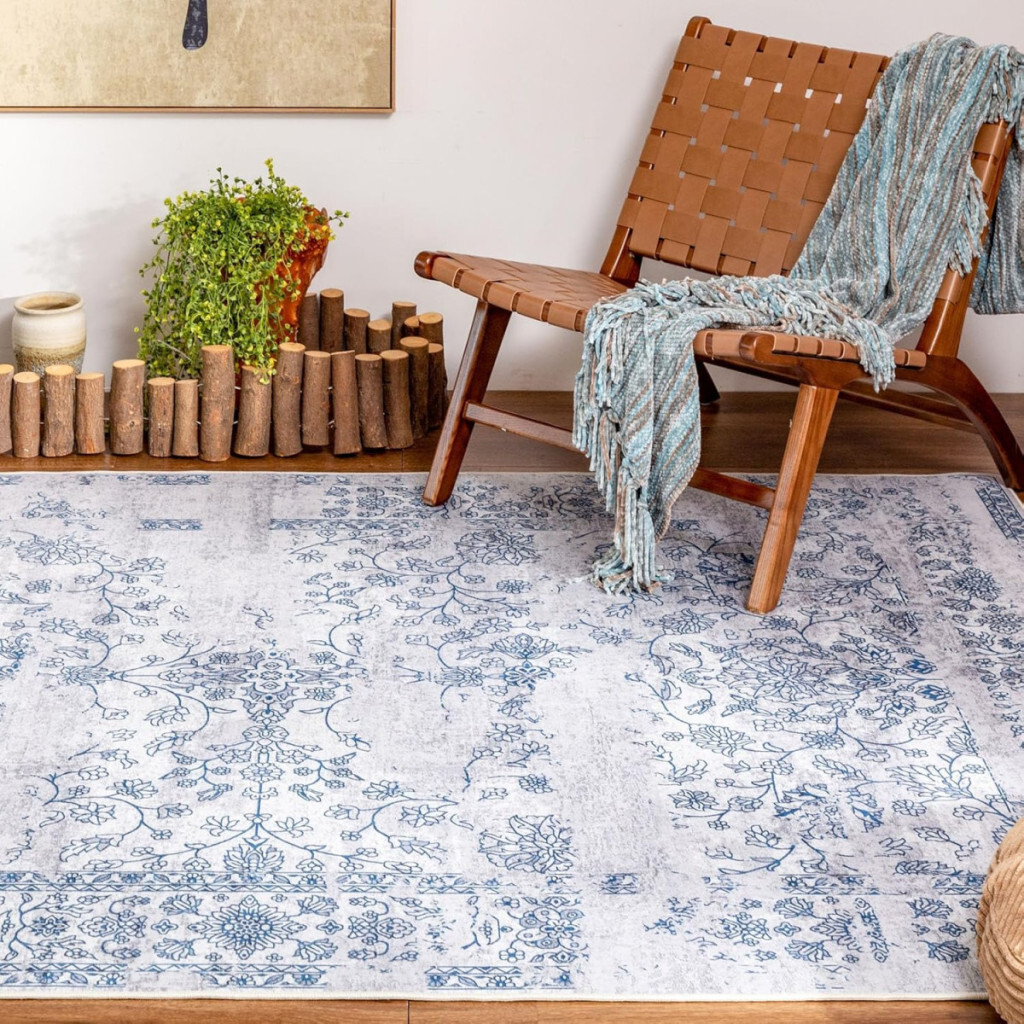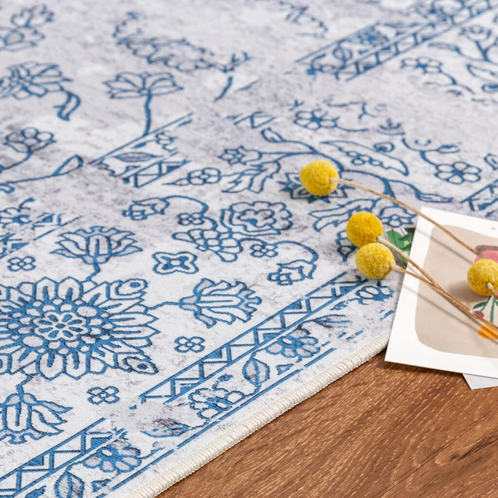 Taleta Barley Blue Teppiche für das Wohnzimmer, Vintage-Stil, traditionelles Blumenmuster, fusselfrei, nicht verformend, extragroßer Teppich für Schlafzimmer, Flur, Küche.