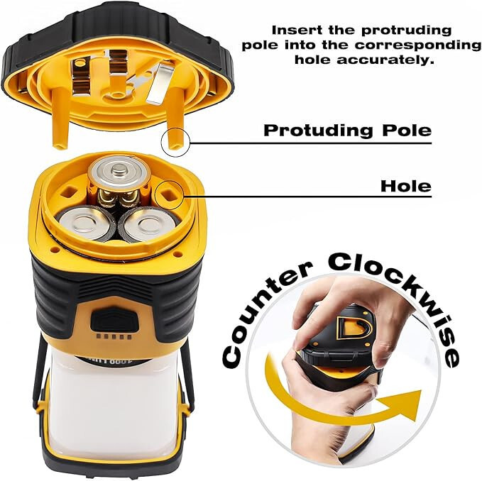 Akku-Campinglampe: Robust, leicht und tragbar, ideal für Camping, Wandern, Angeln, Hundespaziergang und Zeltbeleuchtung. 3× D-Batterie-Netzteil (nicht im Lieferumfang enthalten). Sie müssen nicht auf den Ladevorgang warten. Wenn der Strom ausgeht, können Sie die Batterie jederzeit austauschen.
