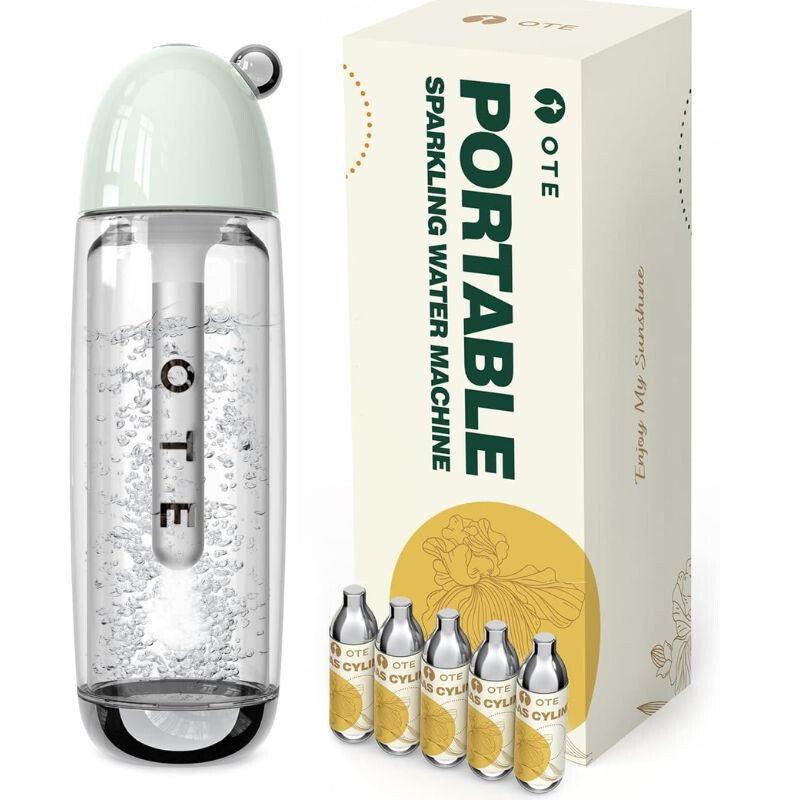 OTE Tragbare Getränkemaschine – Grün, 450 ml Fassungsvermögen und 20 CO2-Kartuschen