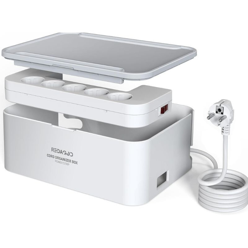 DER Kabelorganisator und Stromverteiler Mit 5 Steckdosen und 3 USB-Anschlüssen (5 V/3, 1A, 15, 5W) ist es eine ideale Lösung für Zuhause und das Büro. Überspannungsschutz Und intelligente Ladefunktion sorgt für sicheres und schnelles Laden Ihrer Geräte. DER Kabelaufbewahrungsbox hilft bei der Organisation von Kabeln, während die ergonomisches Design Und beleuchteter Schalter bietet eine komfortable Nutzung.