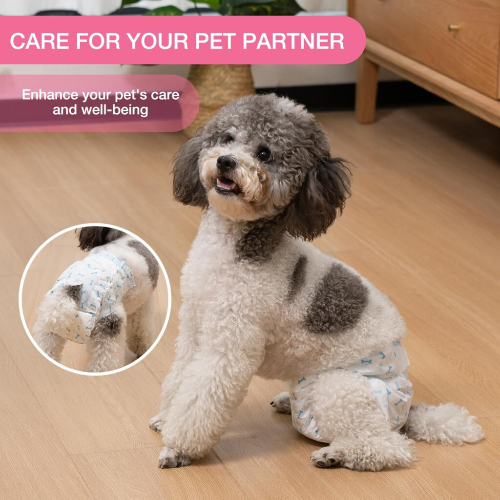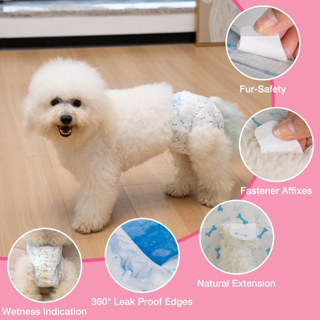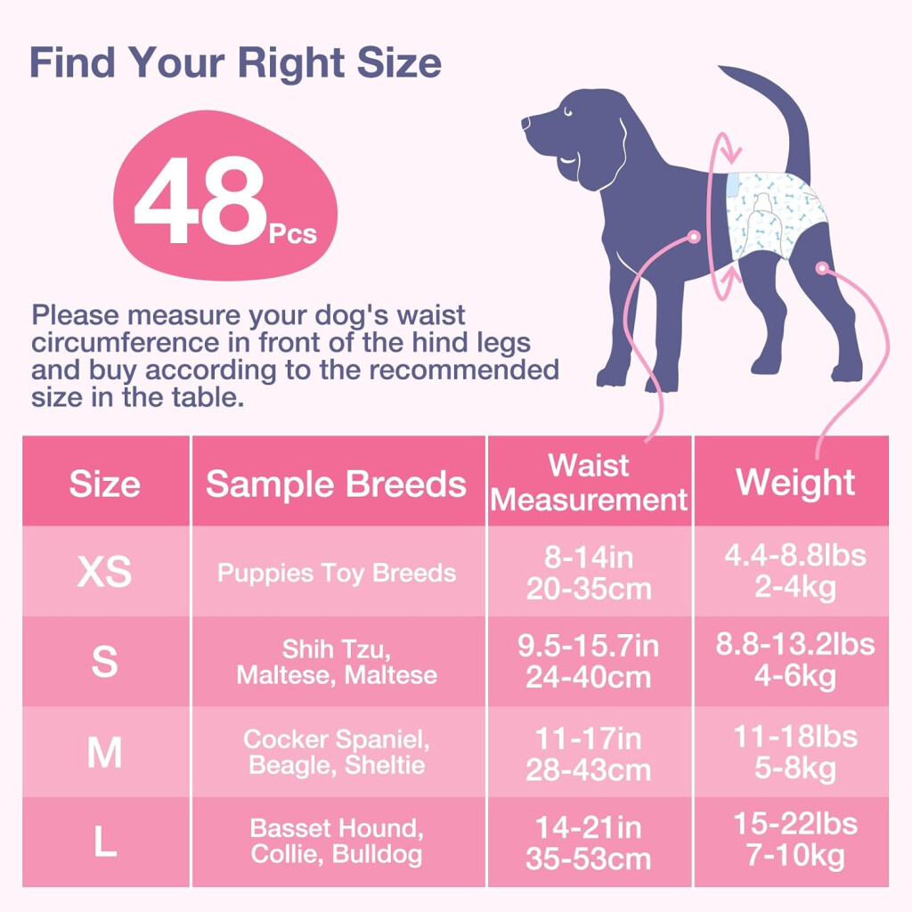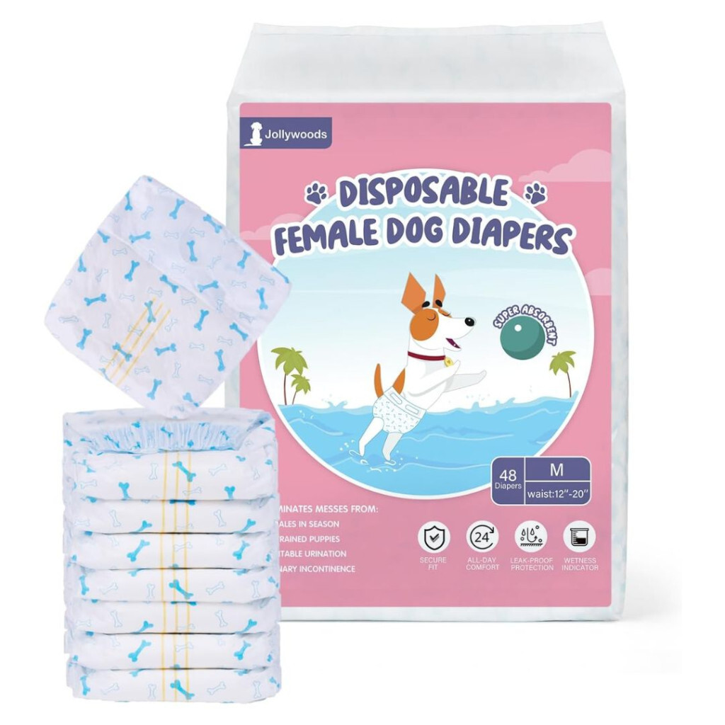 Einweg-Hundewindeln 48 Stück, für kleine Hunde und Katzen mit Feuchtigkeitsindikator, super saugfähig, auslaufsicher, flexible Windeln, für brennende Hunde und Inkontinenzschutz in Größe M.