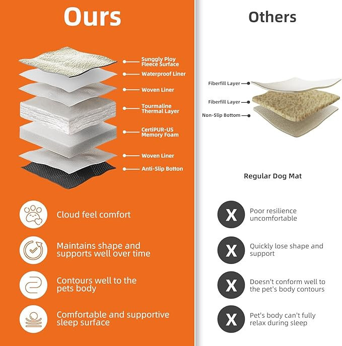 - GRÖSSENDETAILS - Die Abmessungen unseres Hundehüttenbetts betragen ca. 91, 5x 58, 5cm. Dies ist ein ideales Bett für die 92 cm große Hundehütte aus Draht. Diese Hundematratze ist für kleine Katzen und Hunde mit einem Gewicht von bis zu 25 Pfund geeignet, wie z. B. Mops, Shih Tzu, Chihuahua.- ULTRAWEICHES HAUSTIERBETT - Dieses Hundebett hat ein ultraweiches Kunstfell auf der Oberfläche und bietet Ihrem Haustier ein angenehmes Schlafgefühl. Die Innenfüllung besteht aus CertiPUR-US-zertifiziertem Memory-Schaum und bietet Ihrem pelzigen Freund ausreichend Halt.- WASSERDICHTE UND RUTSCHFESTE UNTERSEITE - Ein weiches und flaches Hundebett mit wasserdichtem Futter verhindert das Eindringen unerwünschter Unfälle, während die rutschfeste Unterseite verhindert, dass sich das Hundebett bewegt, was Ihrem Hund ein Gefühl der Sicherheit gibt.- EINFACHE REINIGUNG - Unser Hundebett hat einen Bezug mit Reißverschluss, der maschinenwaschbar und trocknergeeignet ist. Wir bieten eine 1-jährige Garantie auf den Ersatz etwaiger Mängel an unserem Produkt, 30 Tage problemlose Rückerstattung/Rückgabe und Kundenservice von Mora Pets.- VIELSEITIG FÜR DEN GEBRAUCH ZU HAUSE UND AUF REISEN - Das einfache Stufendesign ermöglicht es älteren und mobilitätseingeschränkten Haustieren, problemlos darauf zu sitzen, ohne springen zu müssen, was ideal für Transportboxen, Käfige, Zwinger und Fahrzeuge ist.