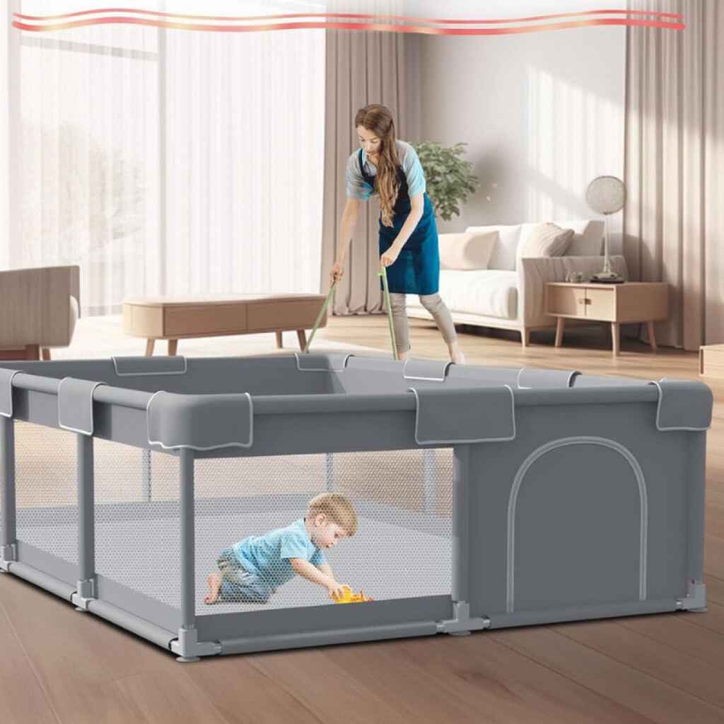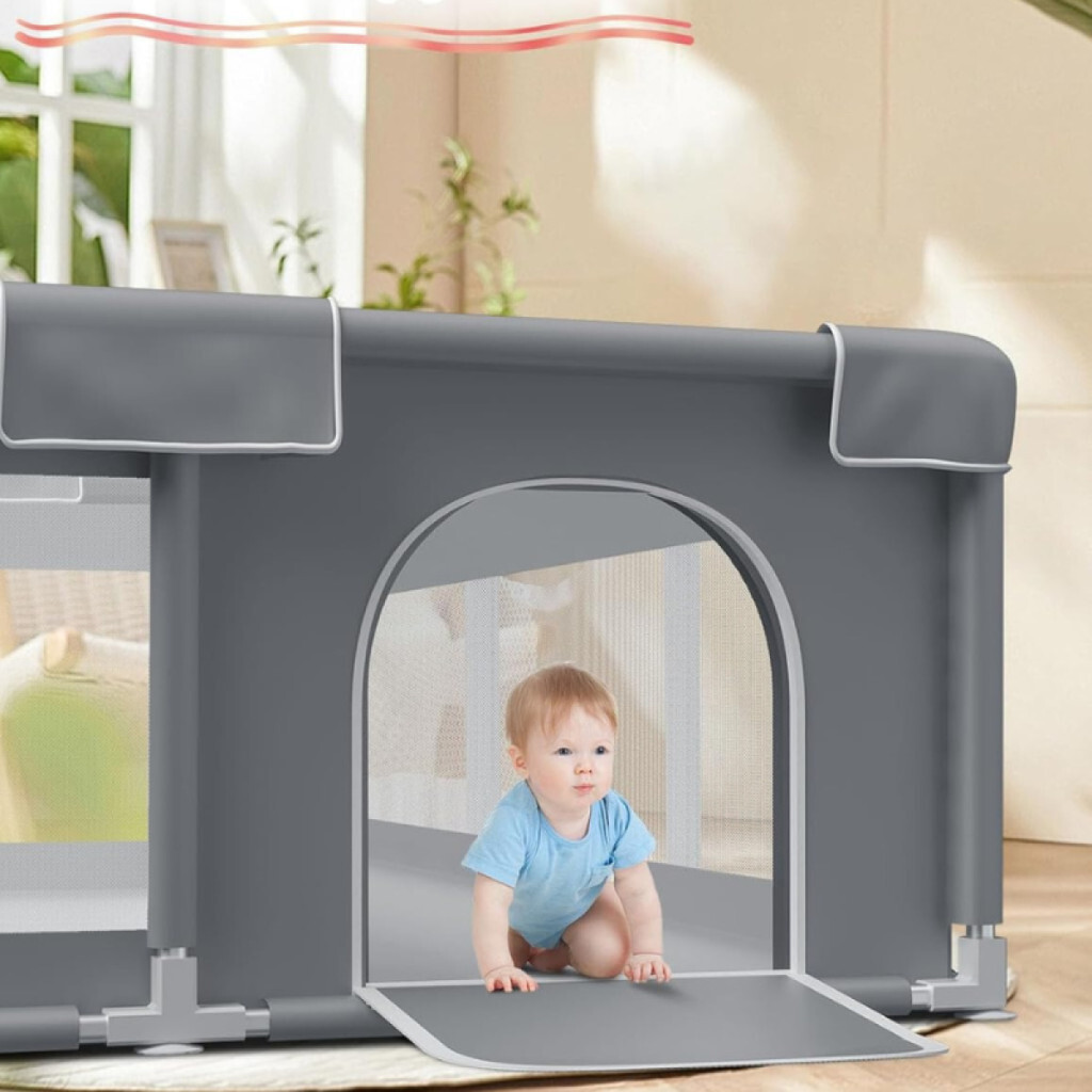 Tenckat Baby-Laufgitter mit Matratze, ausgestattet mit einem weichen, atmungsaktiven Netz. Maße: 180x150x68 cm.