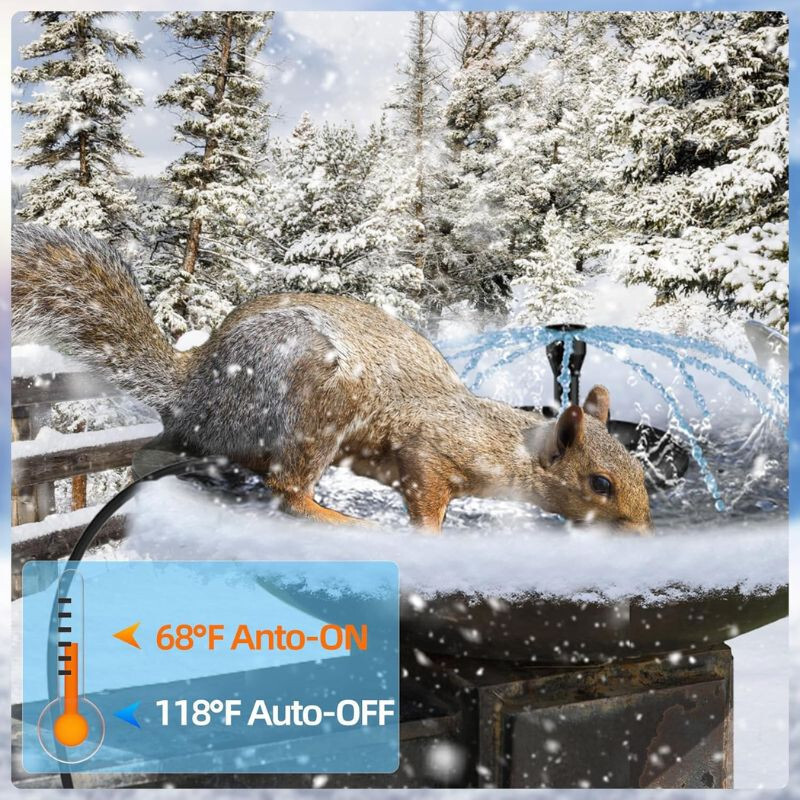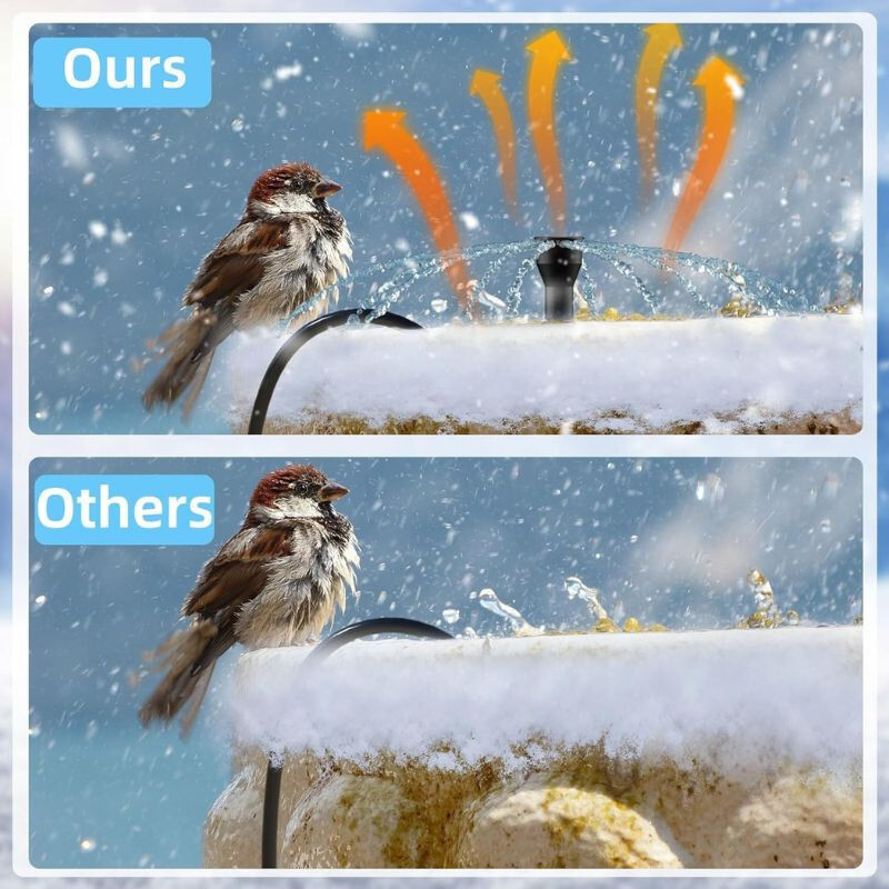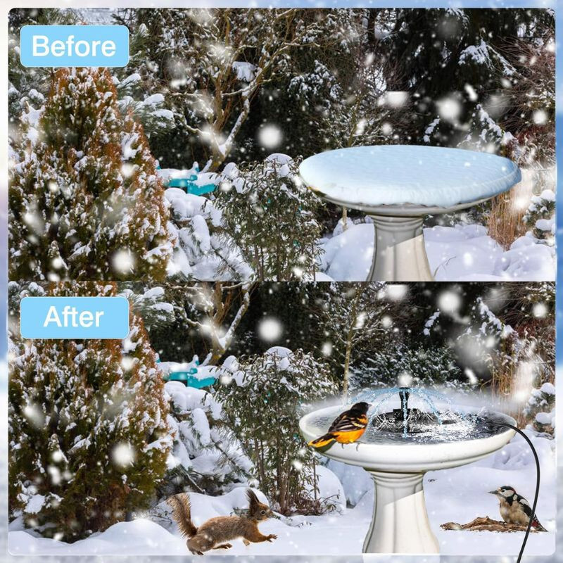 Vogelfutterheizung mit 70W Springbrunnenpumpe – Frostfreies Wasser auch im Winter DER Thermostatische Vogelbadheizung, 70 W sorgt dafür, dass das Wasser in den kalten Wintermonaten nicht gefriert und Vögel so kontinuierlich Zugang zu Trink- und Badewasser haben. DER eingebaute Springbrunnenpumpe Es fördert die Wasserzirkulation, was nicht nur für ein spektakuläres Wasserspiel sorgt, sondern auch der Eisbildung vorbeugt. Einfach zu bedienen und sicher, eine ideale Wahl für jedes Vogelhäuschen im Freien. Hauptmerkmale Verhindert das Einfrieren von WasserDER Thermostatregelung Der Heizer wird automatisch eingeschaltet, wenn die Temperatur sinkt, sodass das Wasser immer die optimale Temperatur behält. Dadurch ist gewährleistet, dass den Vögeln auch im Winter frisches Trink- und Badewasser zur Verfügung steht. Eingebaute SpringbrunnenpumpeDas Gerät ist ein mit Umwälzwasserpumpe Dies fördert die Wasserbewegung und verhindert Vereisung. Darüber hinaus zieht fließendes Wasser Vögel an, sodass Ihr Garten in den kalten Monaten noch mehr Besucher empfangen kann. Sicher und energiesparendDie Vogelbadheizung nicht schädlich für Vögel oder andere Kleintiereund arbeitet mit geringem Energieverbrauch. DER 120-V-Stromversorgung und 70 W Leistung hält effektiv die richtige Wassertemperatur aufrecht, ohne es zu überhitzen. Einfach zu bedienen und zu wartenDie Installation der Heizung ist denkbar einfach: Stellen Sie sie einfach in das Vogelbad, füllen Sie sie mit Wasser und schließen Sie sie dann an die Stromquelle an. Kompakte Größe und optimales Gewicht ermöglicht die Anpassung an verschiedene Vogelfutterspender. Die perfekte Wahl für die Vogelfütterung im WinterDies ist die beheiztes Vogelbad Ein ideales Hilfsmittel für jeden Vogelliebhaber, der sich auch in der kalten Jahreszeit um die Vögel in seinem Garten kümmern möchte. Technische Daten Stromspannung: 120 V Leistung: 70 W Thermostatische Regelung: Ja Pumpe: Eingebaute Umwälzpumpe für Springbrunnen Abmessungen: 15, 8× 13, 8× 5, 7cm Gewicht: 550 g Kabellänge: 1 Meter DER Vogelbadheizung mit Springbrunnenpumpe Die perfekte Lösung für die Winterpflege von Vögeln, die ihnen die ganze Saison über frisches und frostfreies Wasser bietet.