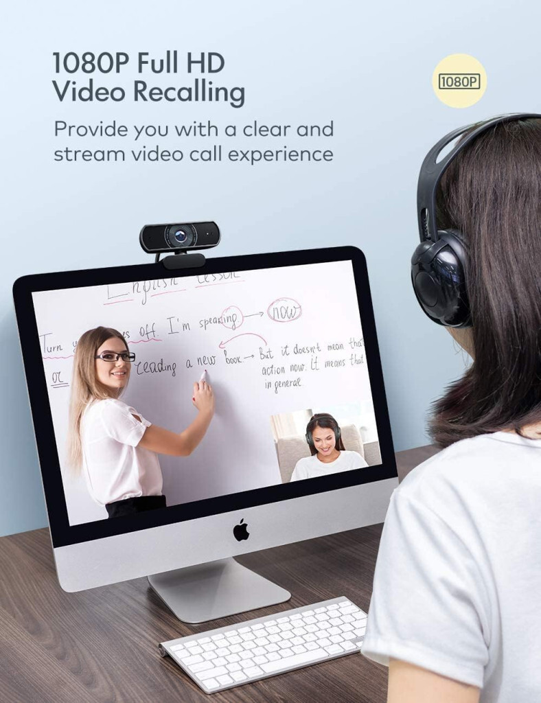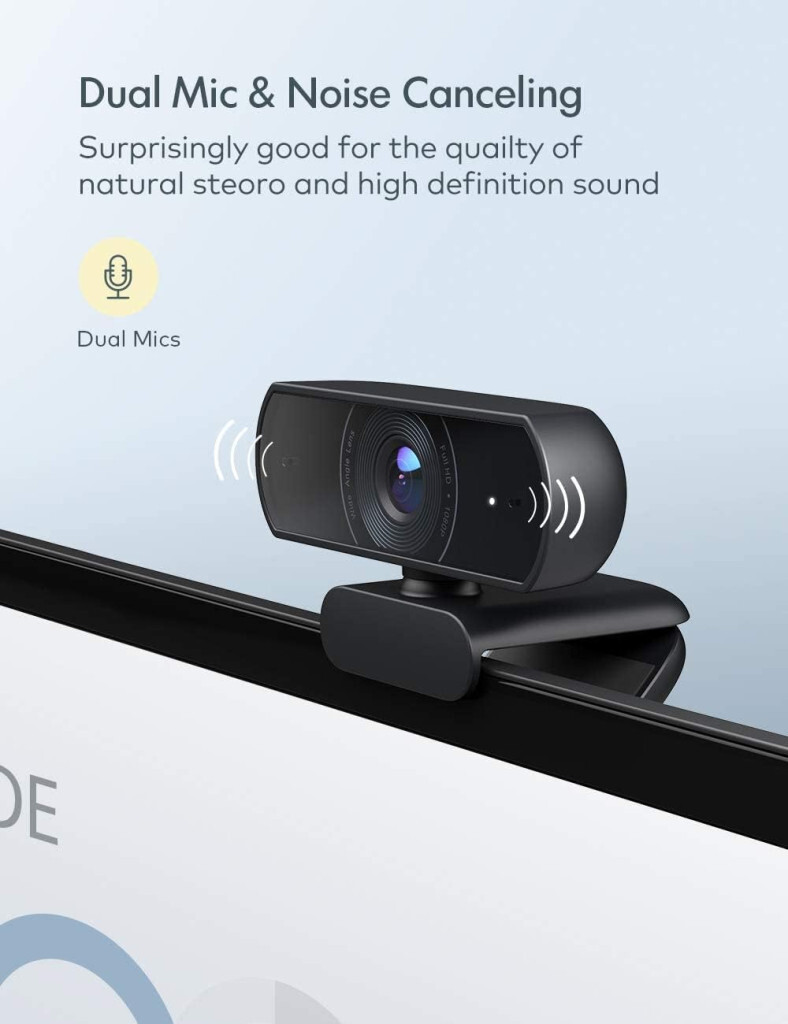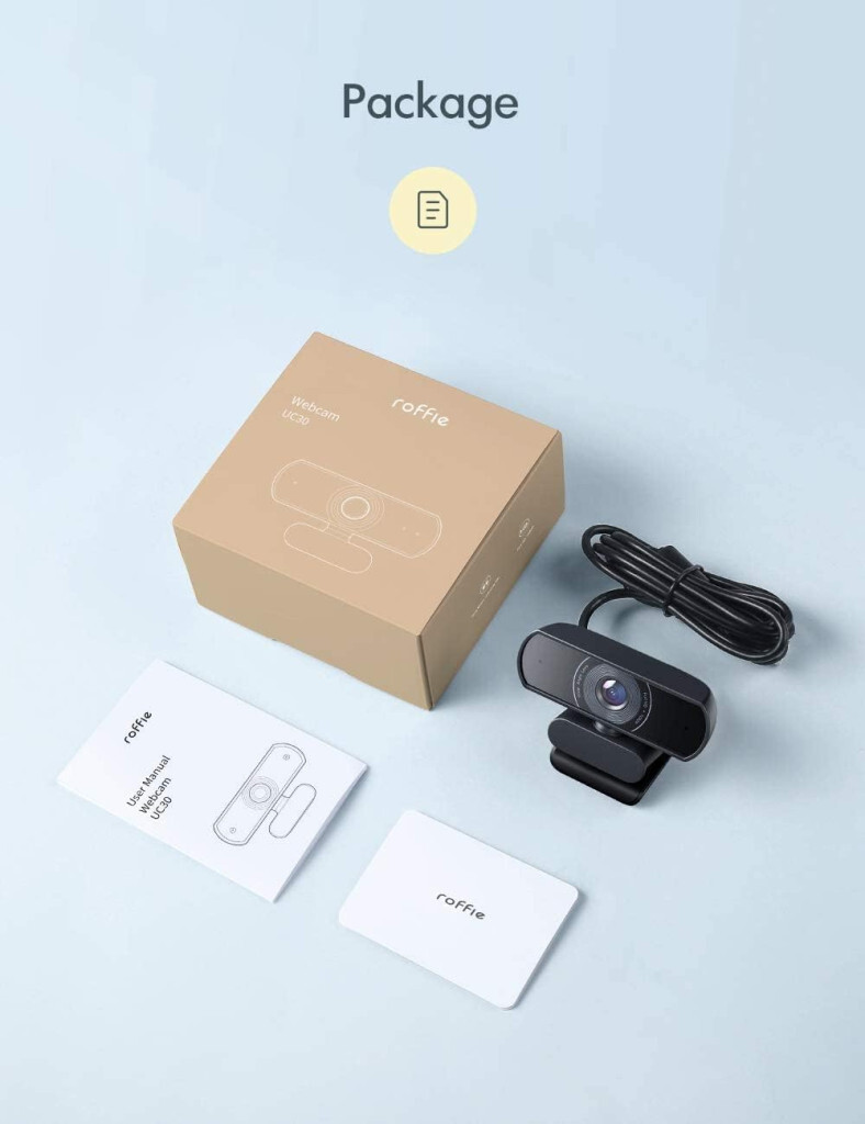 ROFFIE Webcam Full HD 1080p Videoaufzeichnung, mit Dual-Stereo-Mikrofon, Kamera mit USB-Anschluss, für Videoanrufe, Videospiele, Aufnahmen, Konferenzen usw.