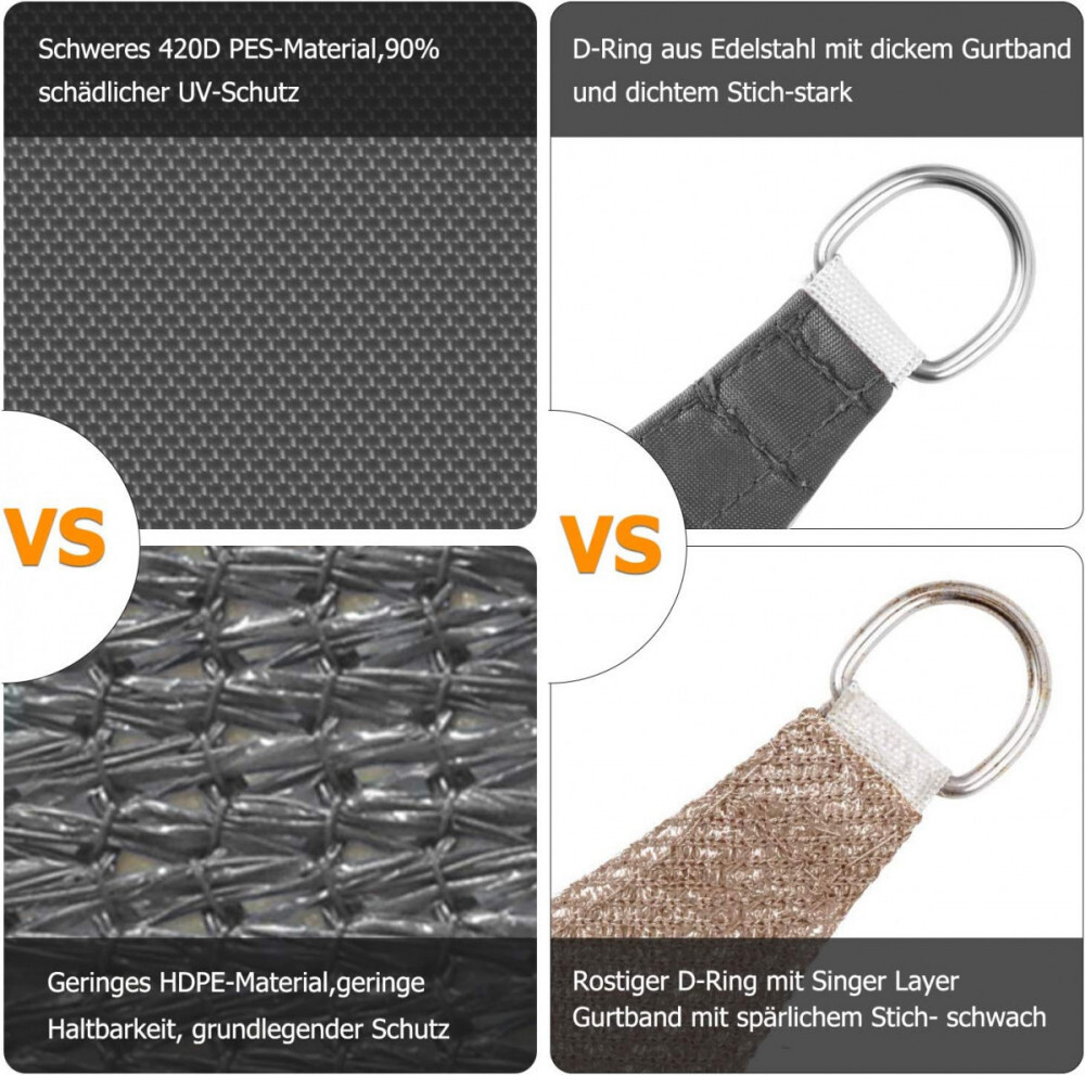 Tragbare Verpackung - Das Sonnensegel wird mit einer passenden Aufbewahrungstasche geliefert und ist besonders kompakt und tragbar – ideal für Outdoor-Aktivitäten.